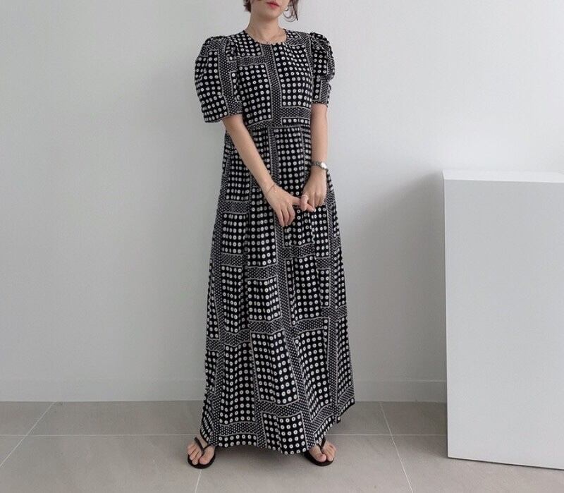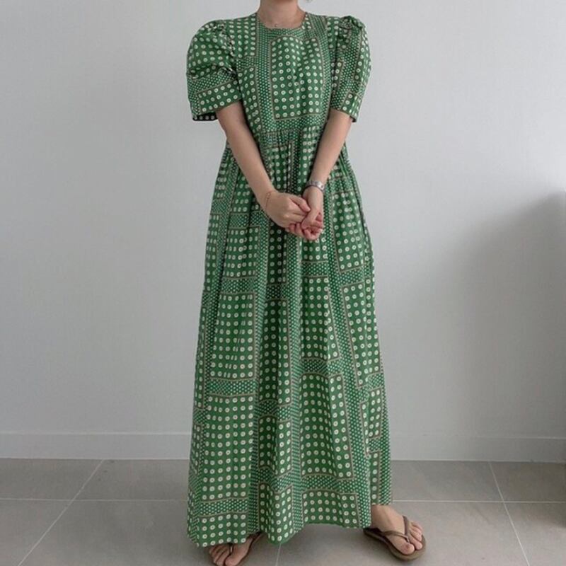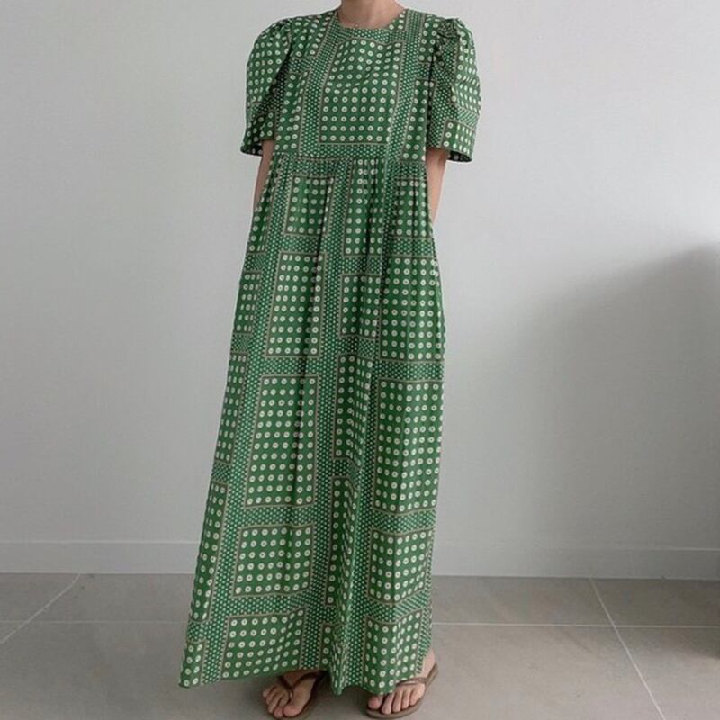 韓国ファッションスタンダードスタイルラウンドネックスリーブロングスカート 夏服ルーズ半袖ワンピース ショート レトロ ハーフスリーブ 夏物 Oネック muzly48053485400 | Neatly