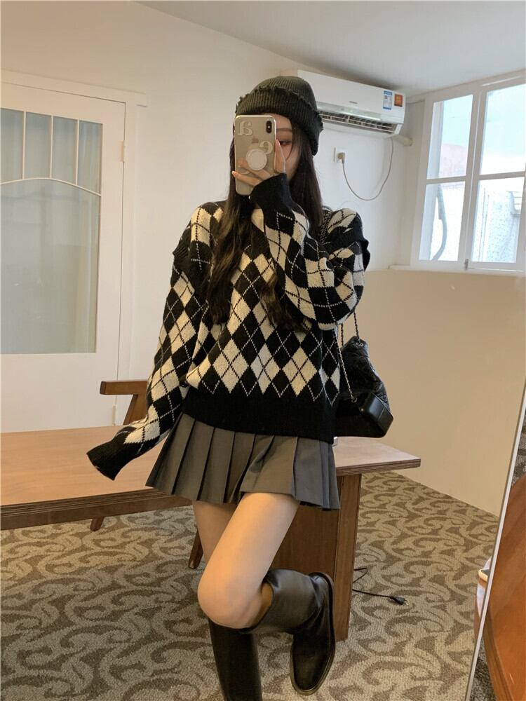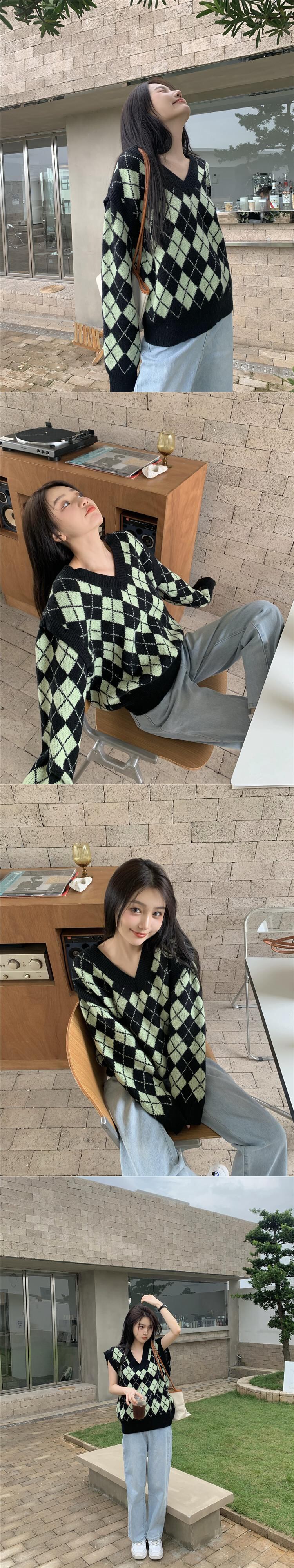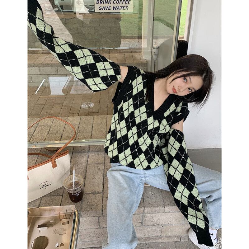 NEW秋物スタイルVネックルーズセーター レディース オータム muzly35747474148
