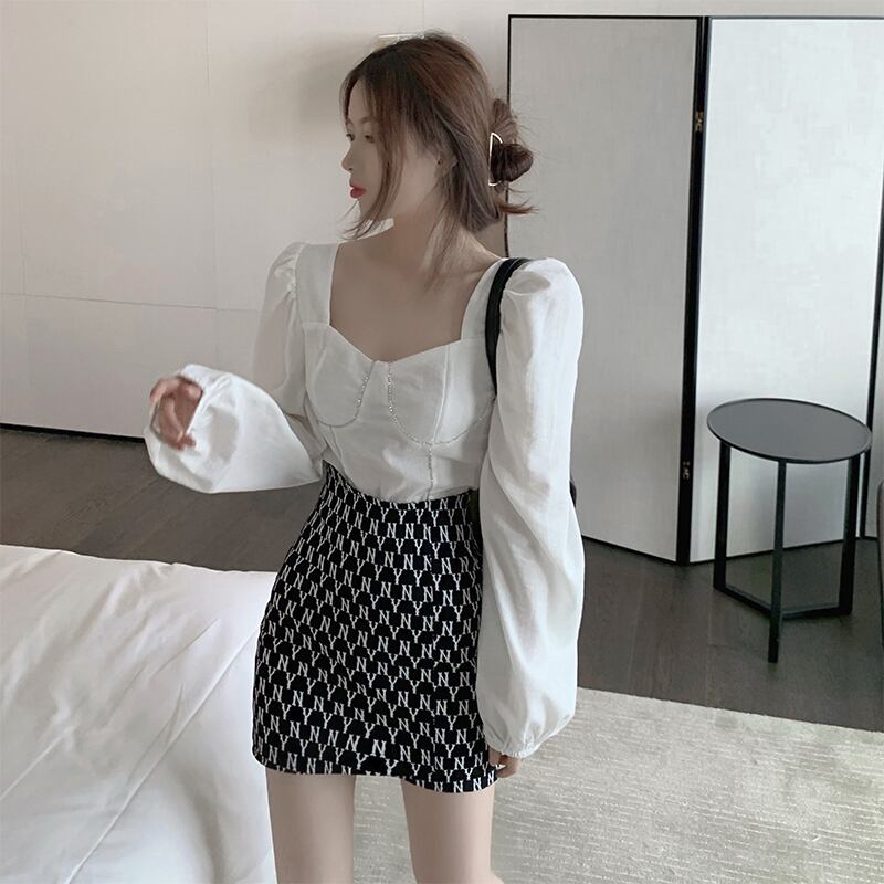 色:ホワイトトップ,ブラックトップ,黒スカート,カーキ色のスカート