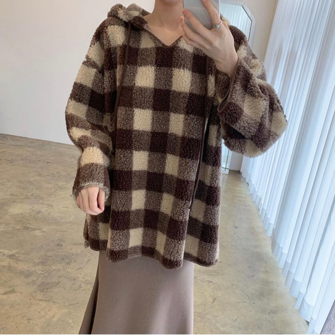 韓国ファッションNEW秋物ウィンタースタンダードルーズフード格子柄セーター ハイウェストスカート レディース ロング レトロ オータム 冬物 長袖 ウエスト muzly6979100993 | Neatly
