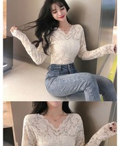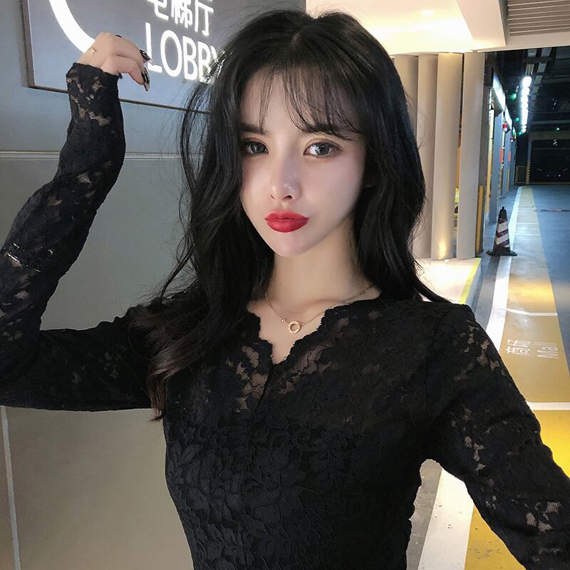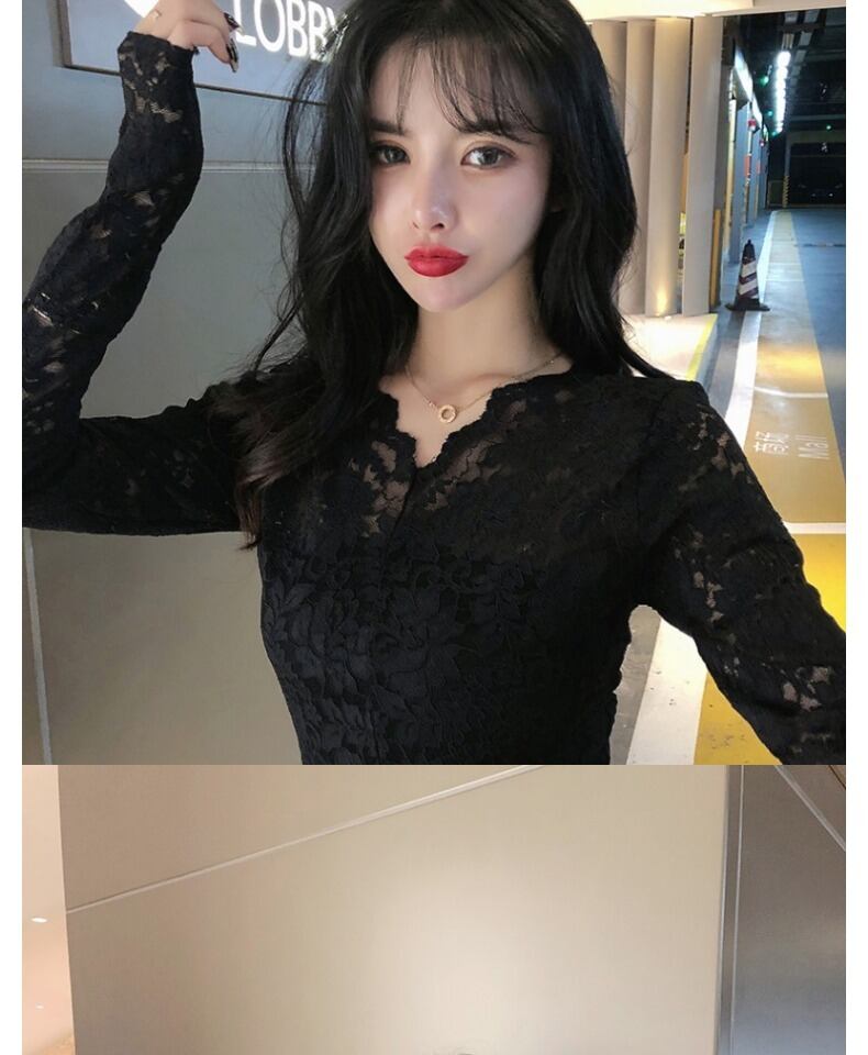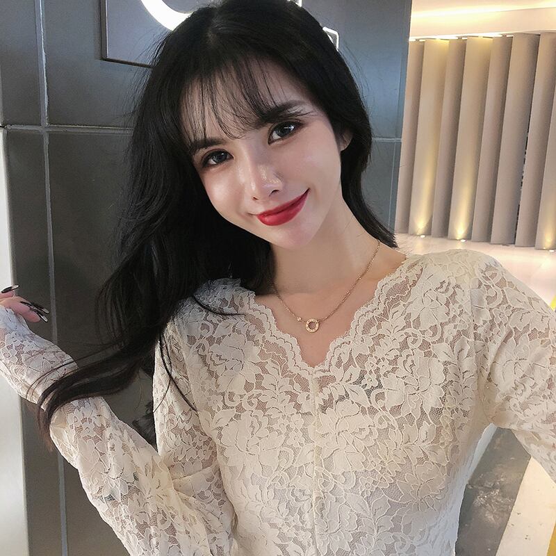 秋物ウィンターゆったりシャツ メッシュブラウス ロングVネックスタイルレース 長袖 大人ガーリー スウィート キュート カジュアル オータム 冬物 ヨーロピアン mengruling32557920796 | Neatly