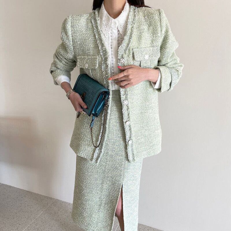 色:グリーンジャケット,白いコート,緑のスカート,白いスカート