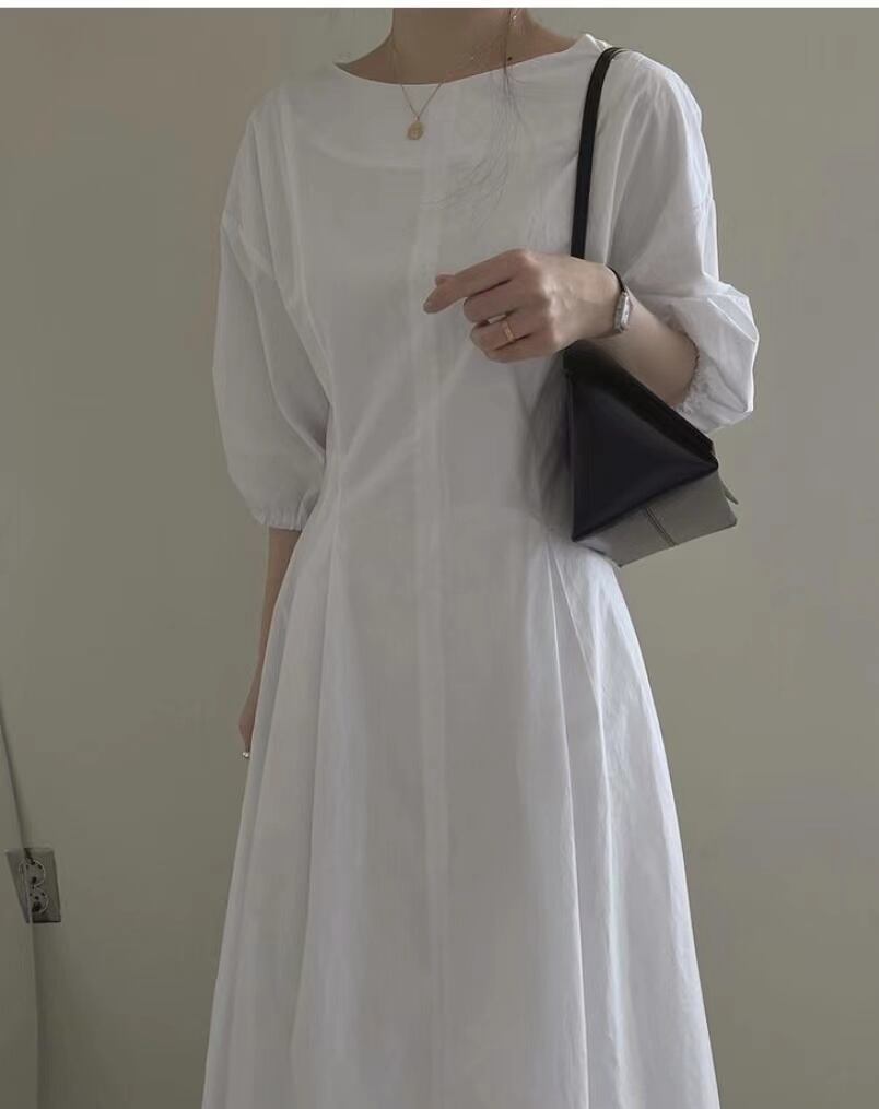 夏服ミニマリストラウンドネックスリーブロングスカート ウェスト薄手ミニ ワンピースワンピース 夏物 Oネック ウエスト muzly23932034416