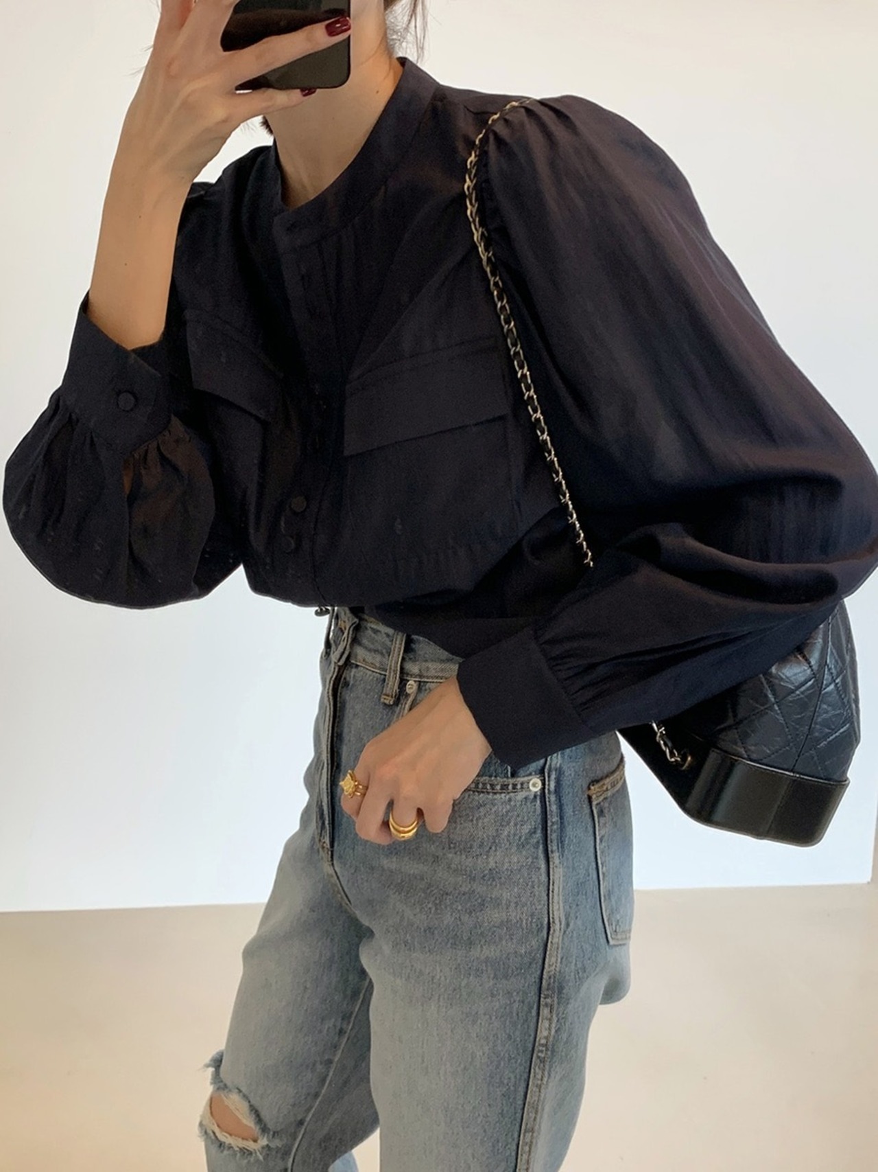 韓国ファッション秋物スタンダードカラーシャツ トップス ロング レトロ オータム 長袖 muzly13176612439