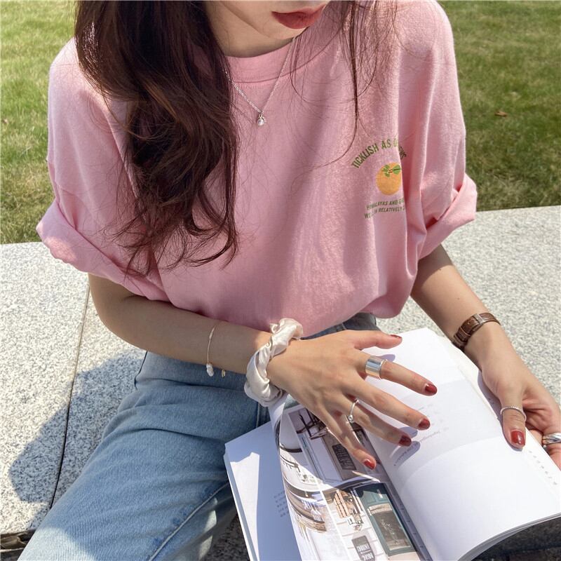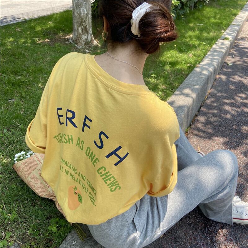 NEW夏服ラウンドネックプリント柄ルーズベーシックトップス ゆったりTシャツ 夏物 Oネック muzly79323705829