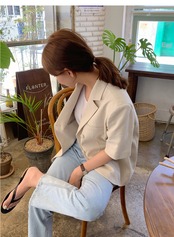 韓国ファッション夏服カラールーズダブルブレストジャケット レディース 夏物 muzly58026136104