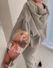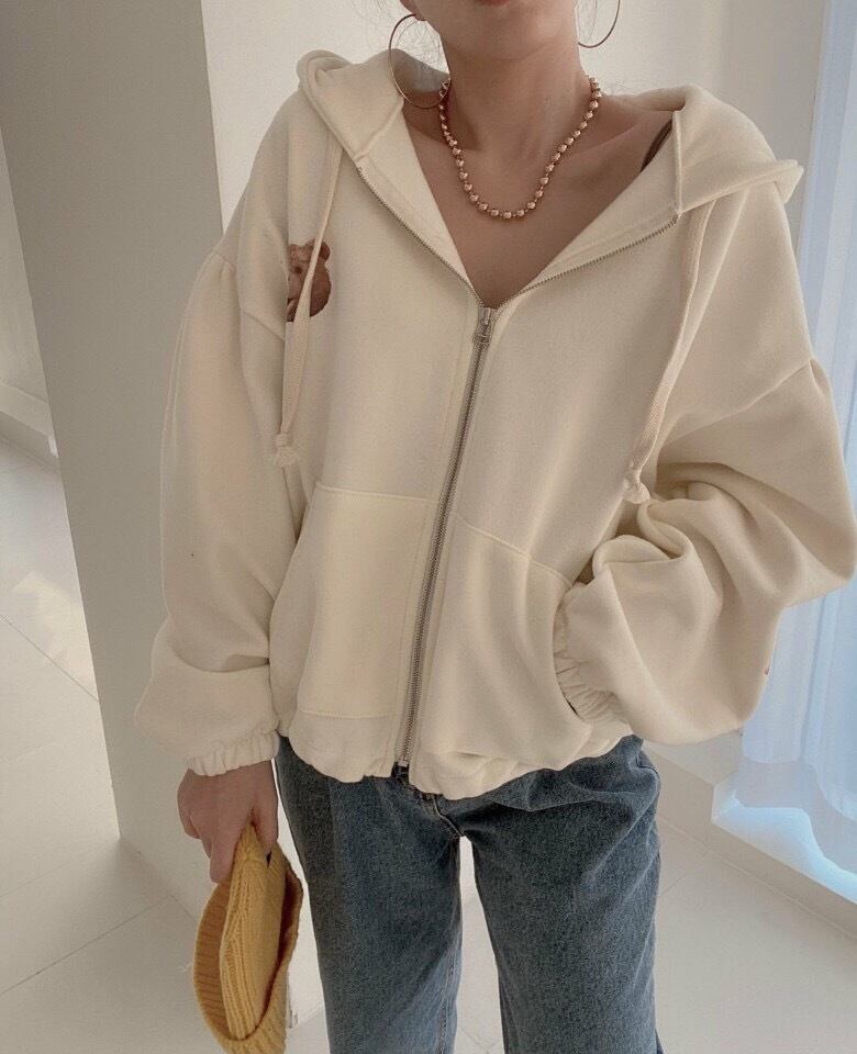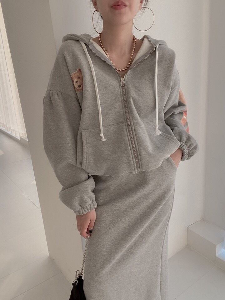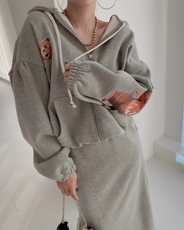 秋物プリントルーズカジュアルフードジッパーカーディガンセーター ジャケット ロング オータム 長袖 muzly38980731296