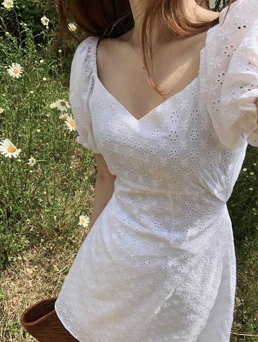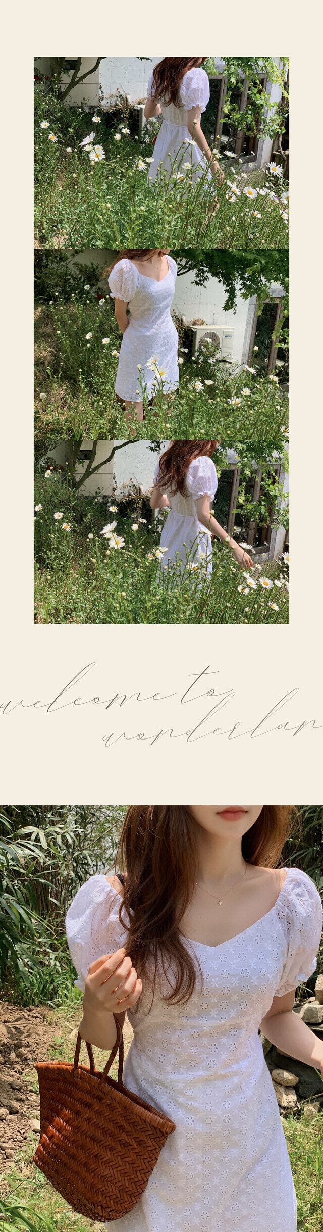 韓国ファッション夏服スタンダード刺繍Vネックスリーブショートスカート ウェスト半袖ワンピースレディース レトロ ハーフスリーブ 夏物 ウエスト muzly16061475759