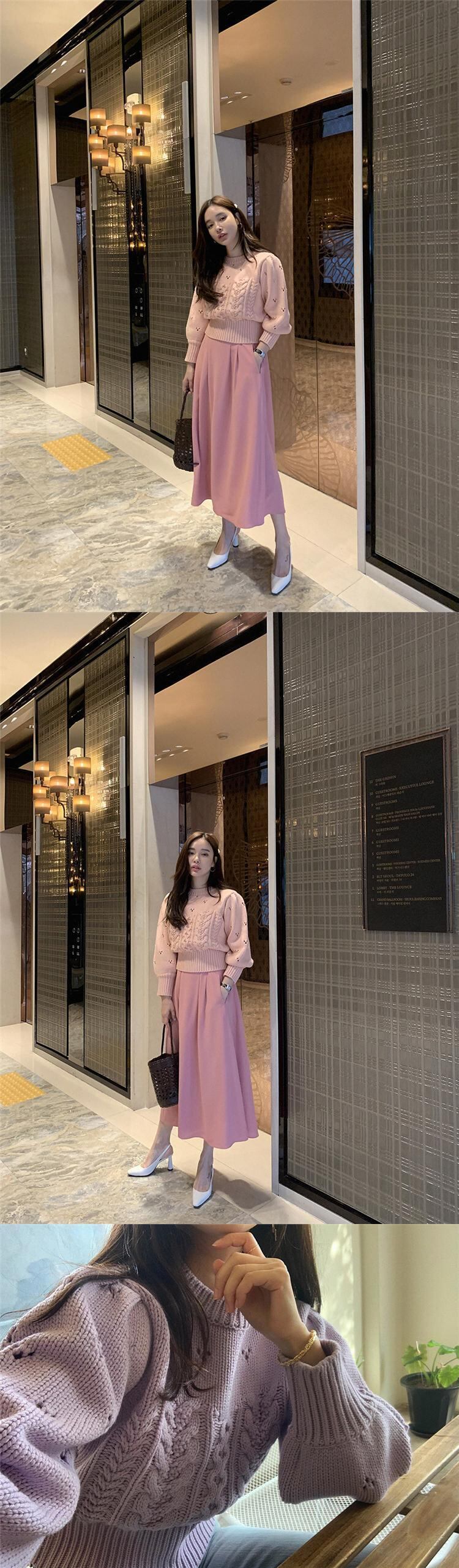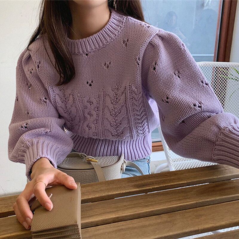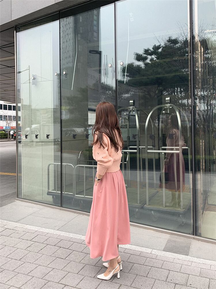 秋物ラウンドネックジャカードニットセーター トップス ルーズレディース ロング 大人ガーリー スウィート キュート カジュアル オータム Oネック 長袖 muzly15357781202 | Neatly