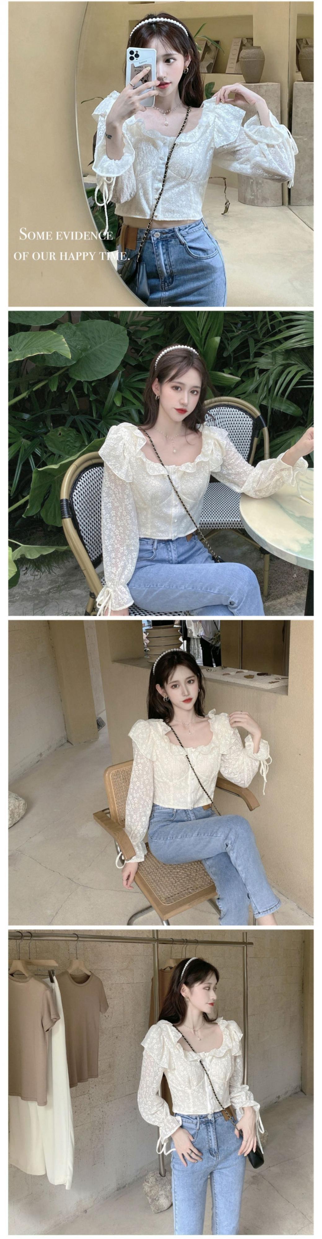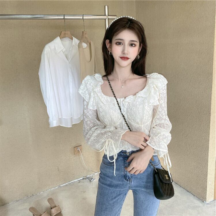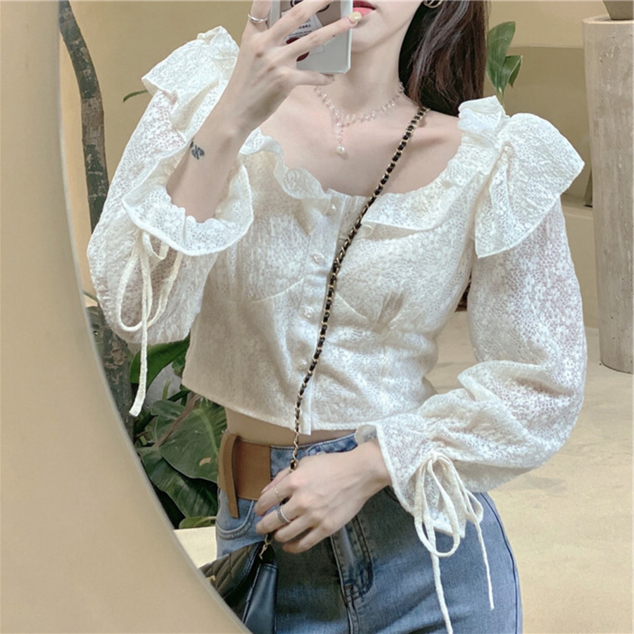 カラーレースTシャツシャツ 秋物ゆったりハイウェストショート ロング 大人ガーリー スウィート キュート カジュアル オータム スクウェア 長袖 ウエスト mengruling52774462782 | Neatly