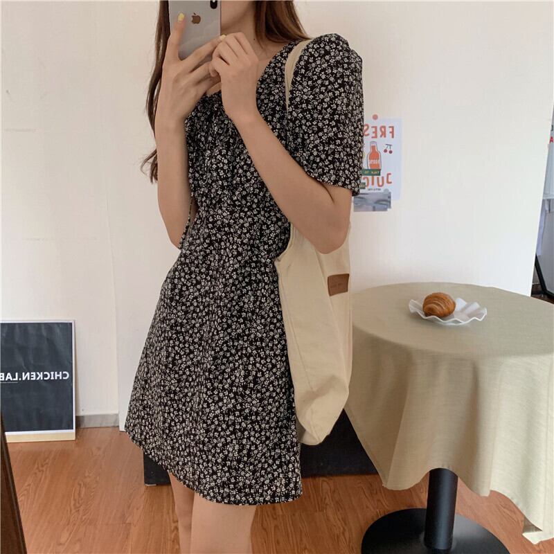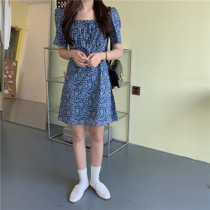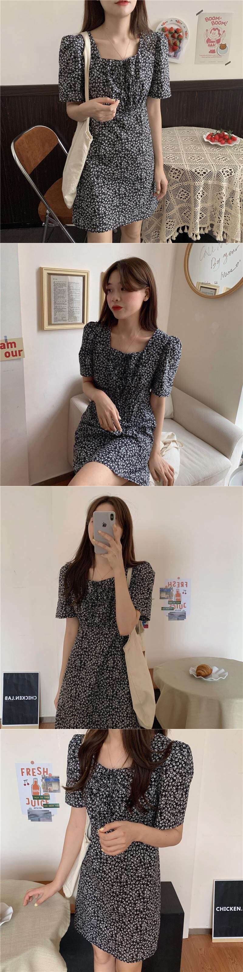韓国ファッション夏服スタンダードホルターフローラルショートスカート ミニ ワンピースワンピース レトロ レース 夏物 花柄 レースアップ スクウェア muzly23064088975 | Neatly