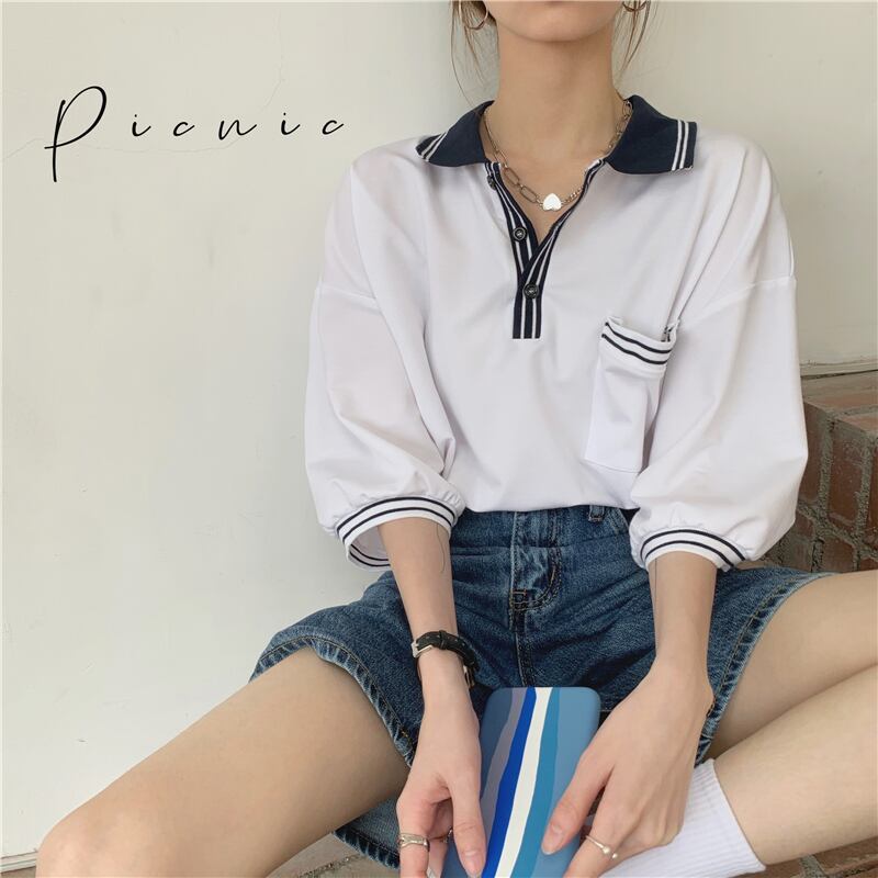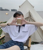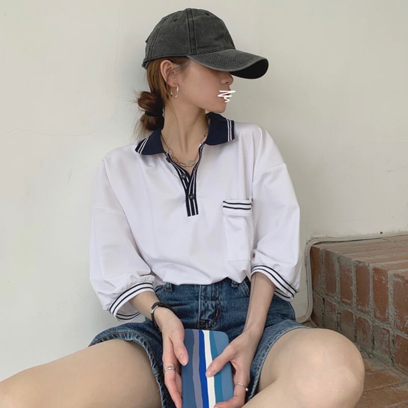 NEW夏服スタンダードカラーシャツ ルーズカジュアルTシャツレディース レトロ 夏物 ボーイズ muzly3103264685