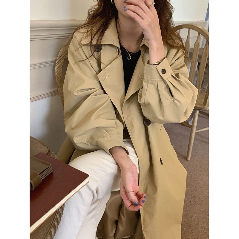 韓国ファッション秋物スタイルジャケット ベルト ウェスト薄手レディース ロング オータム ハーネス 長袖 ウエスト ミドル丈 muzly36186954405