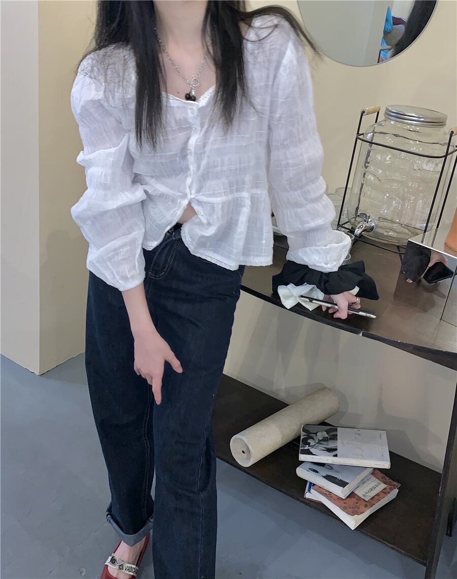 韓国ファッション秋物ラウンドネックプリーツトップス ルーズシャツ レディース ロング 大人ガーリー スウィート キュート カジュアル オータム Oネック 長袖 muzly17115195766 | Neatly