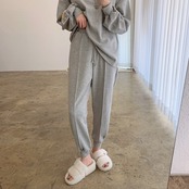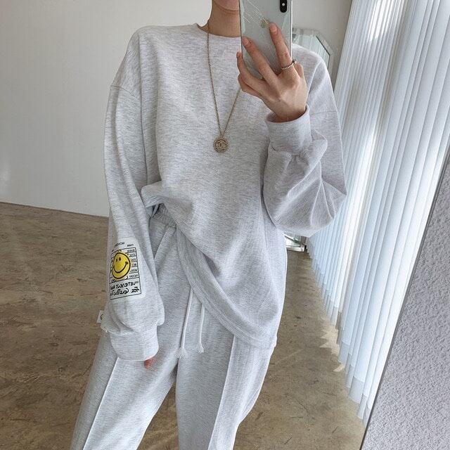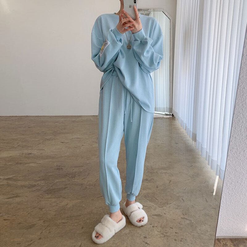 韓国ファッションNEW秋物ラウンドネックルーズセーター ストレッチウェストカジュアルレギンス レディース ロング エラスティック 伸縮 オータム Oネック 長袖 ウエスト muzly325394357 | Neatly