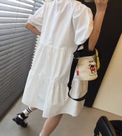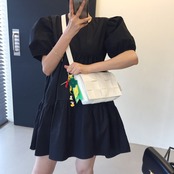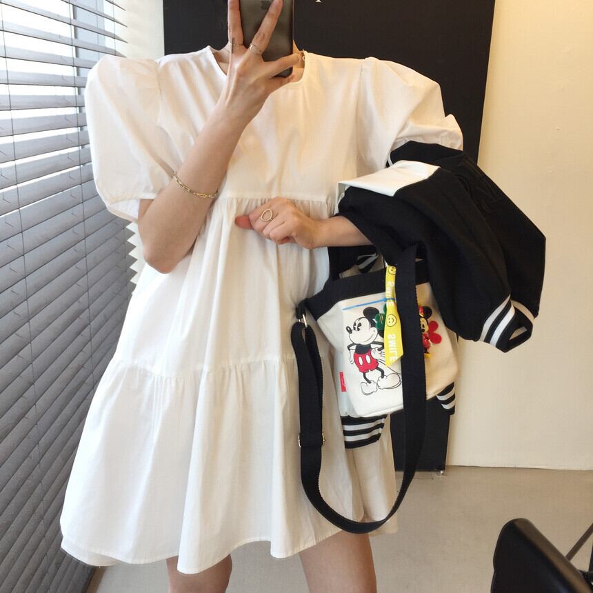 夏服ラウンドネックパフスリーブスリーブソリッド カラースタイルルーズ半袖ワンピースレディース ショート ハーフスリーブ 夏物 Oネック ソリッドカラー muzly8392758142 | Neatly