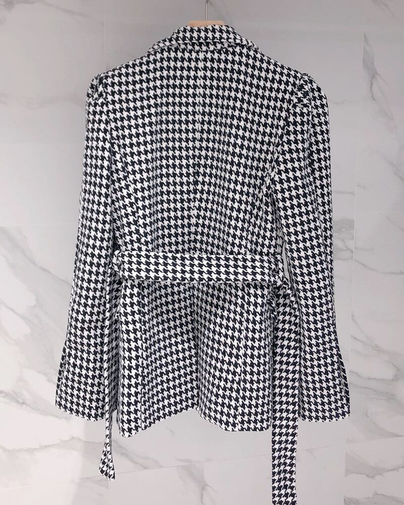 秋物スタンダードカラーダブルブレストスリーブシャツ ベルト ウェスト格子柄ジャケット レディース ロング レトロ オータム ハーネス 長袖 ウエスト muzly49898422699 | Neatly