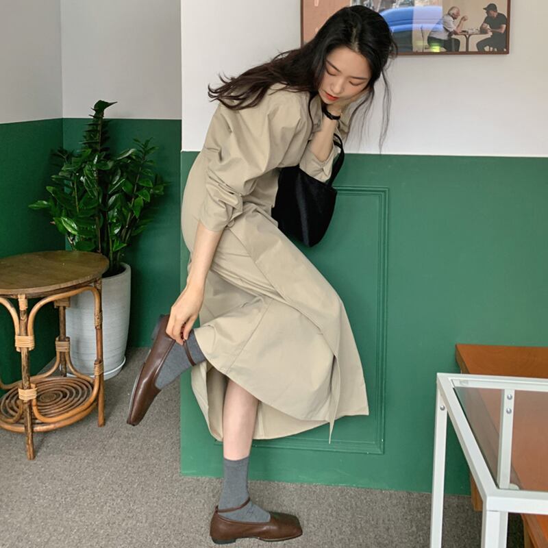 秋物スタンダードソリッド カラーラウンドネックブレストワンピースウェストレディース ロング レトロ レース オータム Oネック レースアップ ソリッドカラー 長袖 ウエスト muzly46038859565