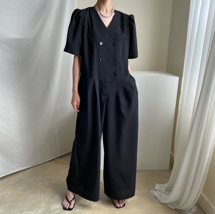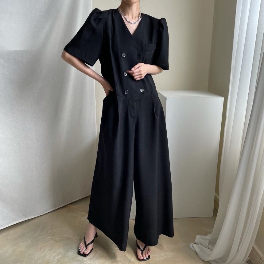 NEW夏服Vネックダブルブレストスリーブジャンプスーツ オールインワン ルーズ薄手パンツ レディース 夏物 muzly68530675482
