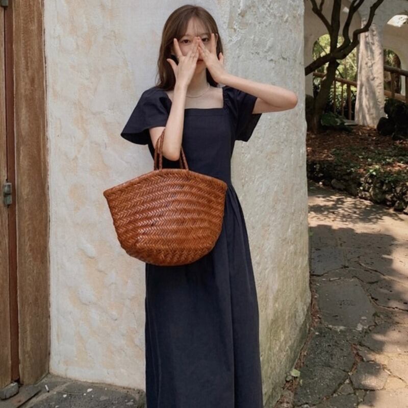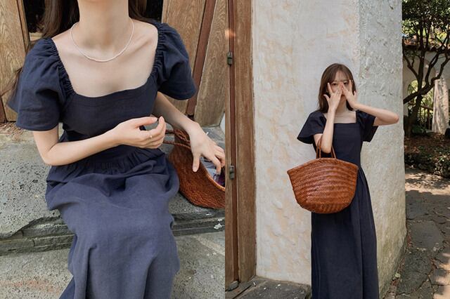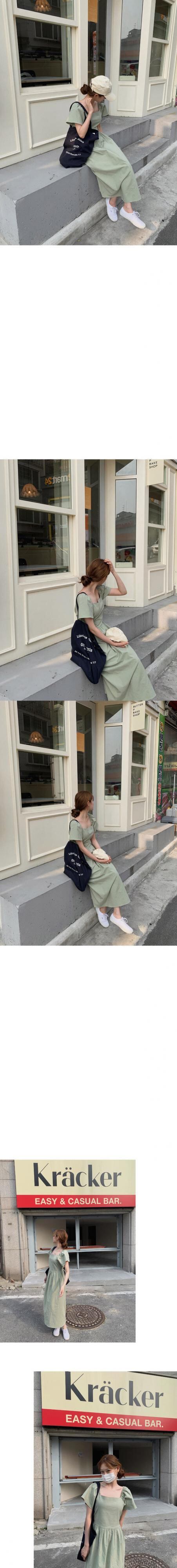 スタンダードスタイルカラースリーブロングスカート 夏服ソリッド ハイウェストウェスト半袖ワンピース ショート レトロ ハーフスリーブ 夏物 ソリッドカラー スクウェア ウエスト muzly16315599943 | Neatly