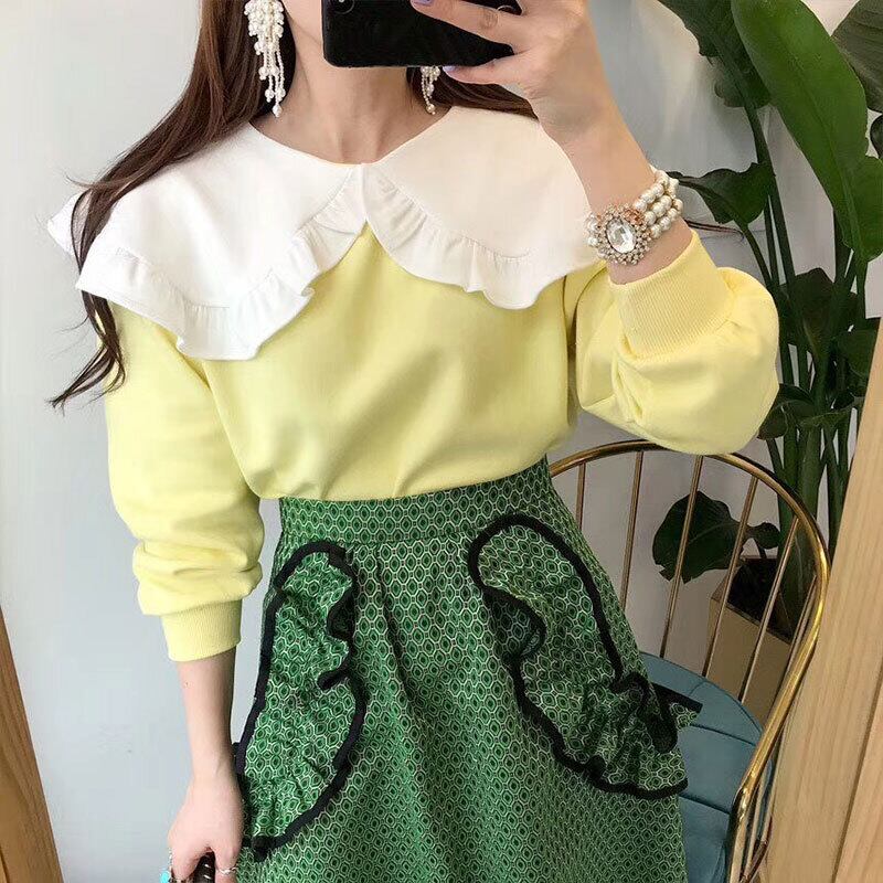色:黄色いセーター,青いセーター,青いスカート,緑のスカート