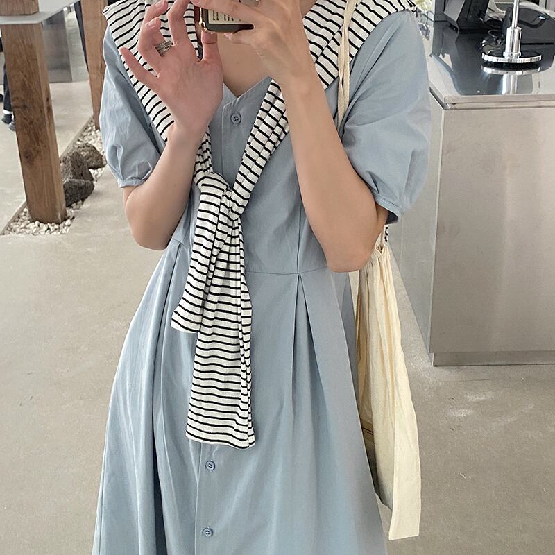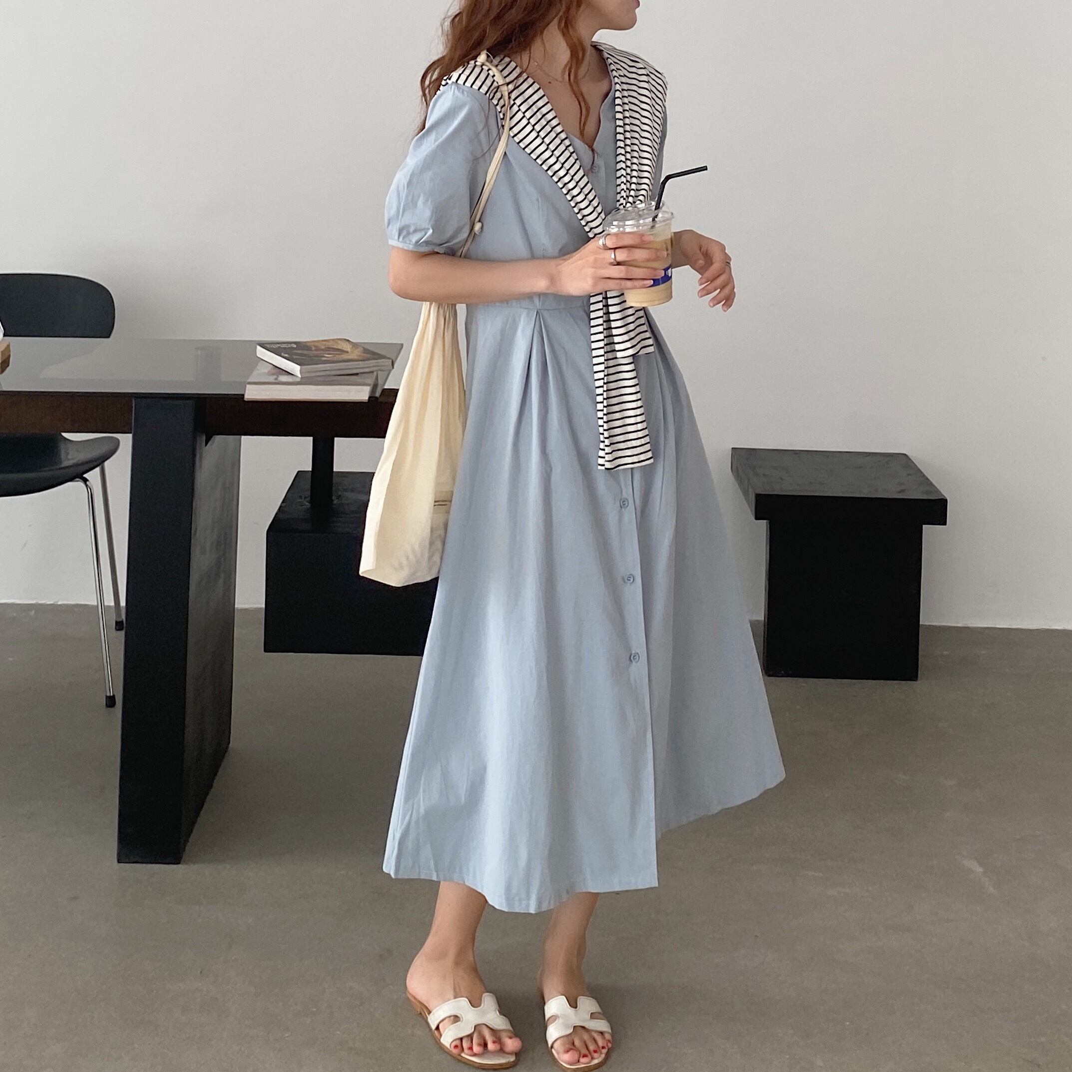 NEW夏服Vネックショールスリーブロングウェスト薄手ワンピースレディース 夏物 ウエスト muzly65646406550