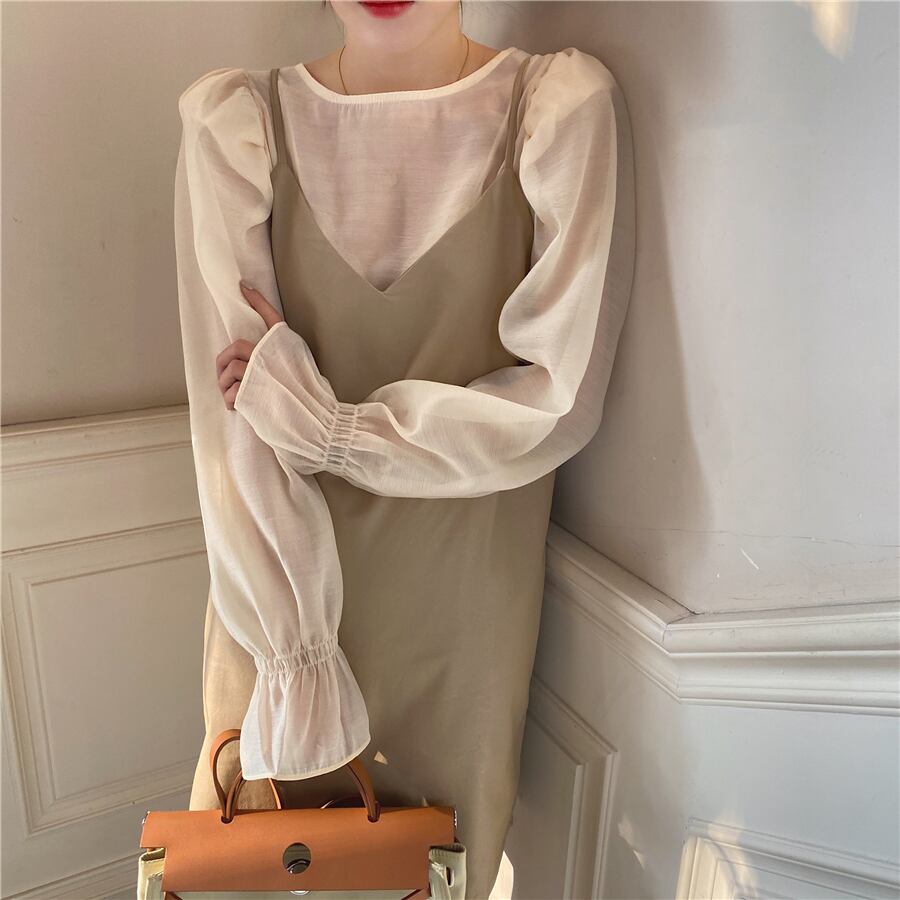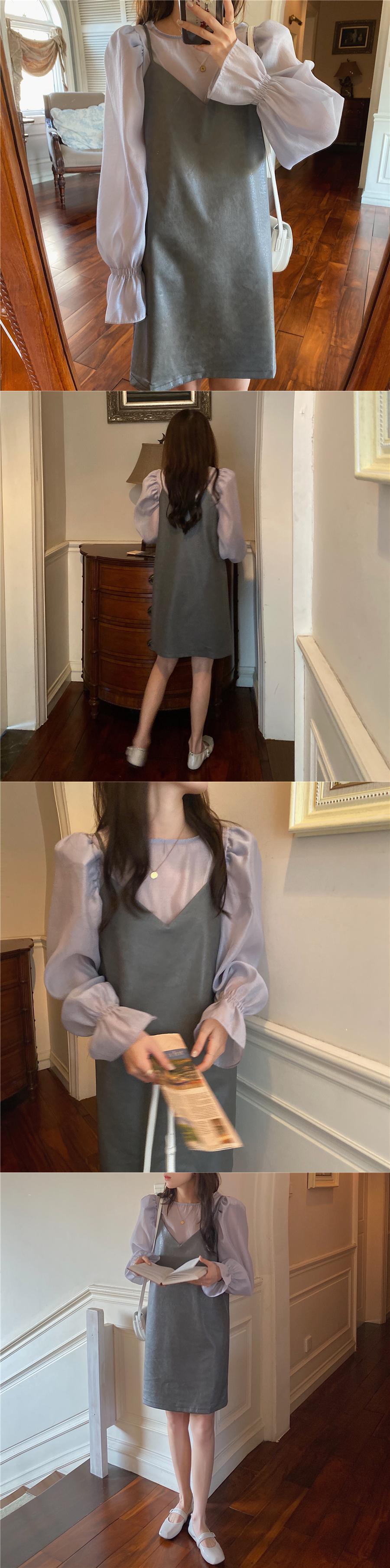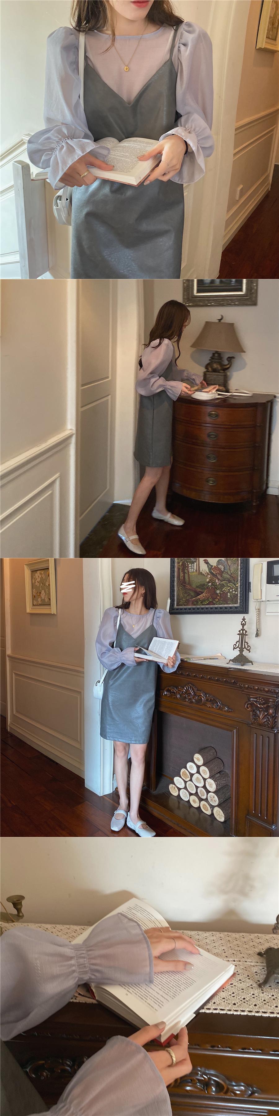 色:アプリコットトップ,ブルートップ,ベージュサスペンダースカート,グレーブルーキャミソール