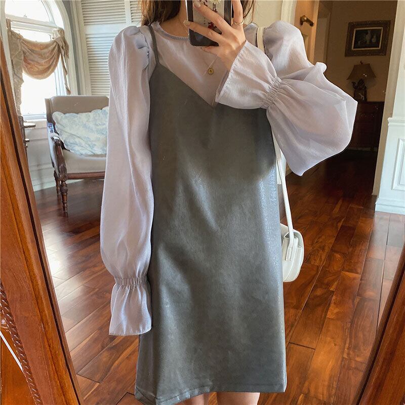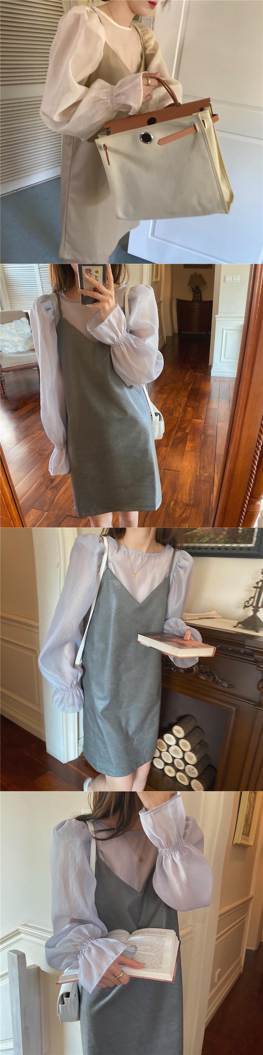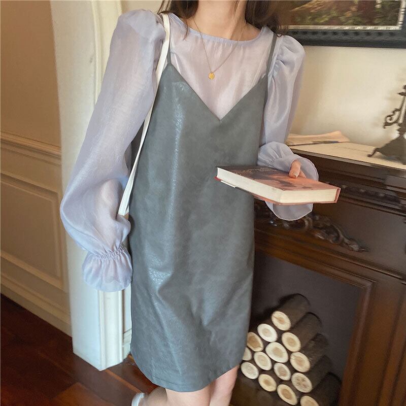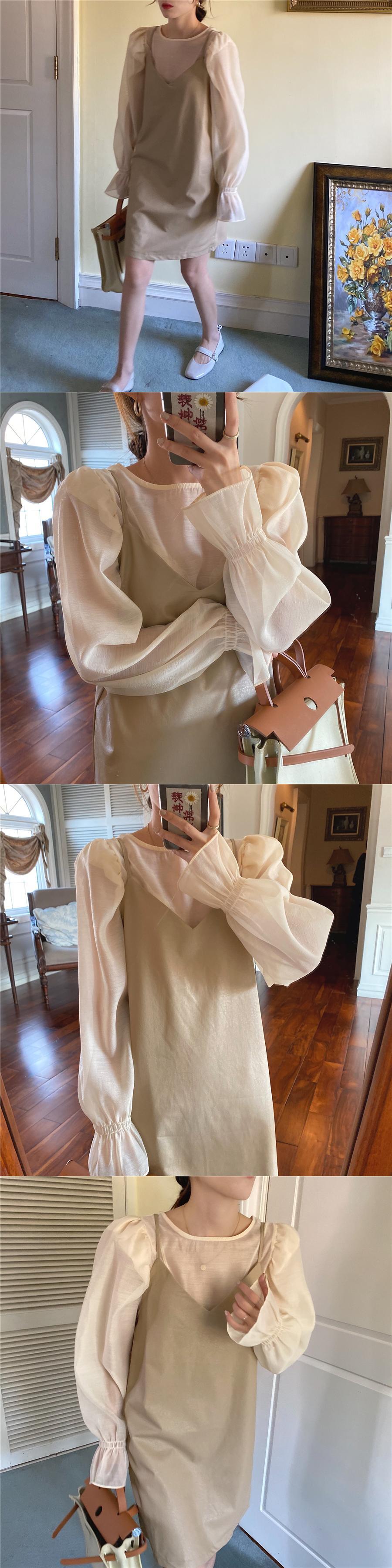色:アプリコットトップ,ブルートップ,ベージュサスペンダースカート,グレーブルーキャミソール