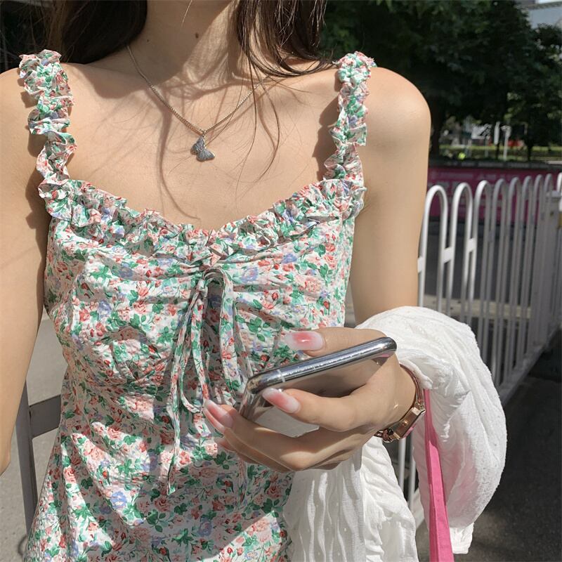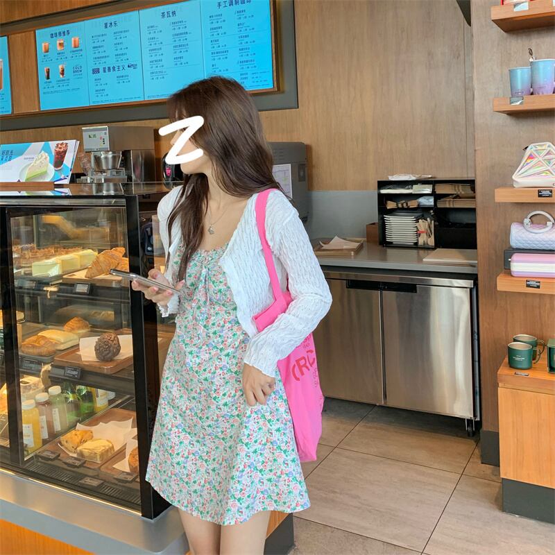 韓国ファッションNEW夏服ウェストフローラルワンピースカーディガントップス 大人ガーリー スウィート キュート カジュアル 夏物 花柄 オフショルダー ピュア ウエスト muzly17810331735 | Neatly