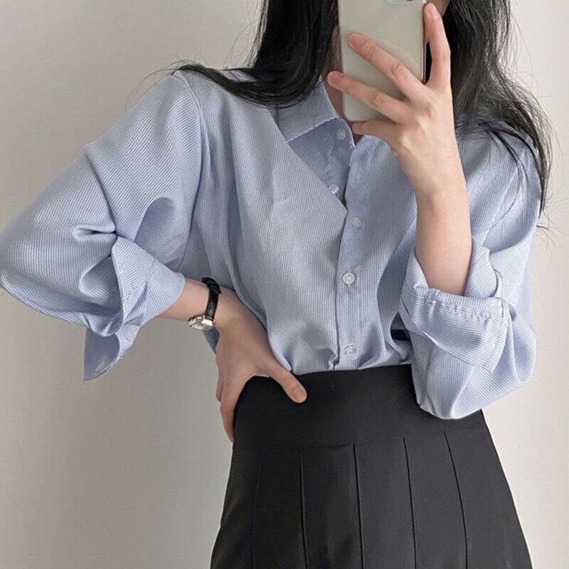 秋物シャツ ルーズストライプブラウス ロング オータム 長袖 muzly79157207482