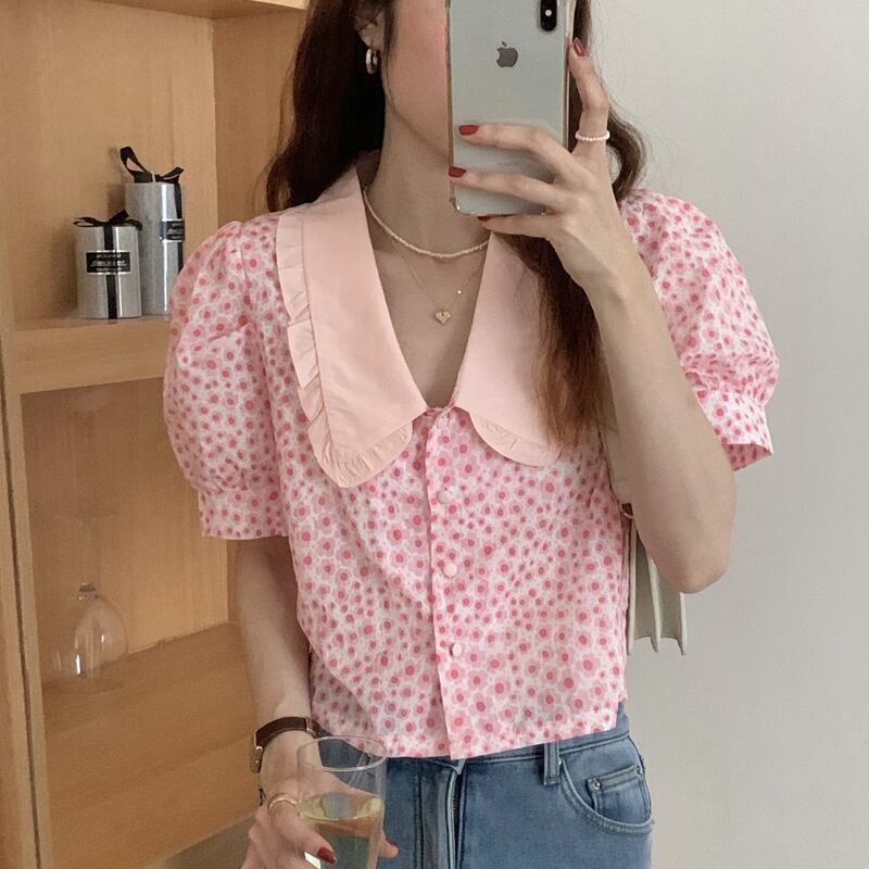 夏服カラーショートシャツ フローラル半袖スリーブレディース ハーフスリーブ 夏物 花柄 muzly71500283324