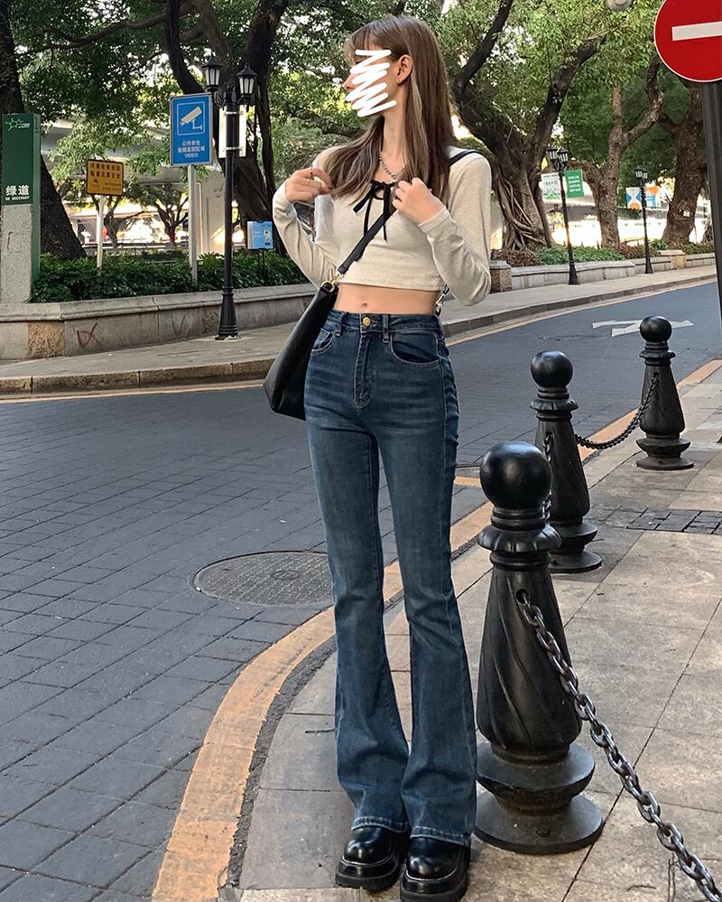 ハイウェストウェストジーンズ レディーススタンダード薄手パンツ レッド レトロ ウエスト muzly6988462417