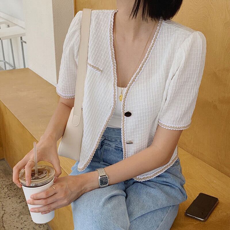 韓国ファッションNEW夏服Vネックカーディガンシャツ ショートルーズジャケット 夏物 muzly56066311747