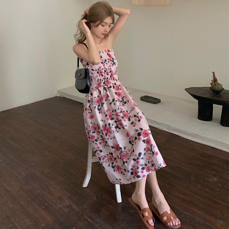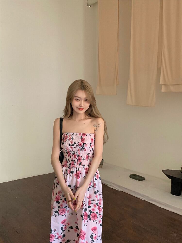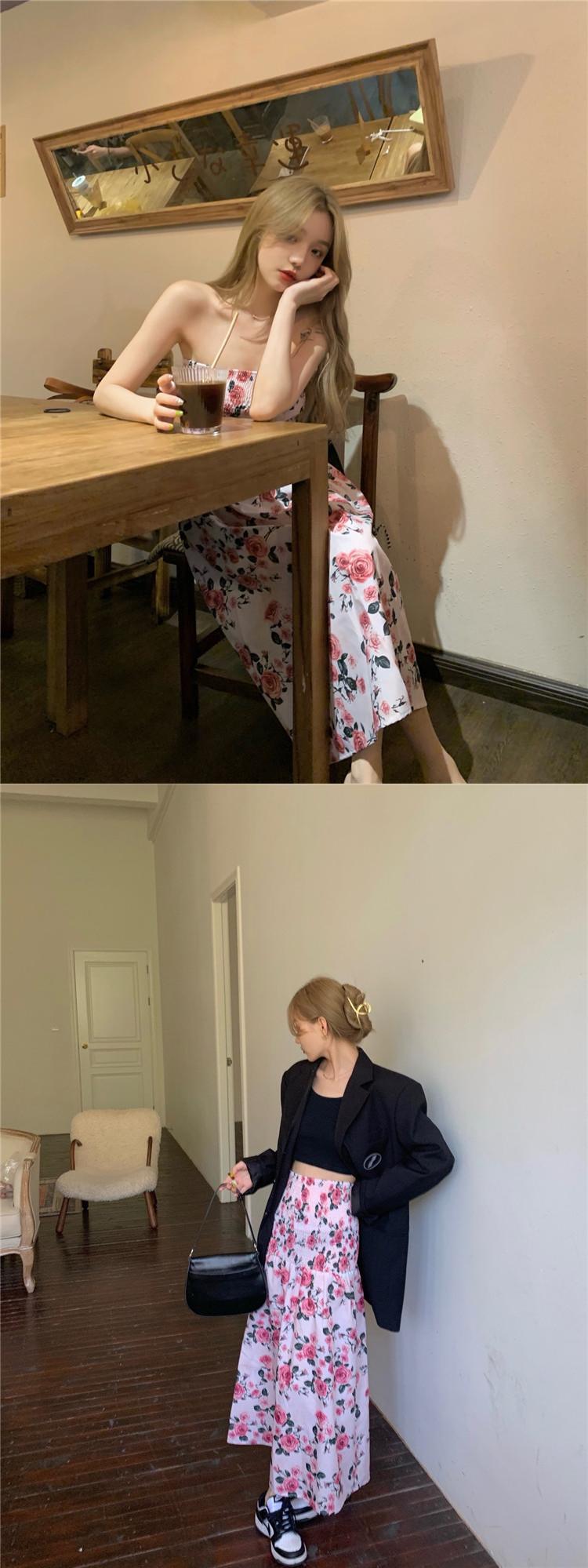NEW夏服フローラルウェストトップス ノースリーブワンピースハイウェストAラインスカート 大人ガーリー スウィート キュート カジュアル 夏物 花柄 ウエスト muzly25924623152