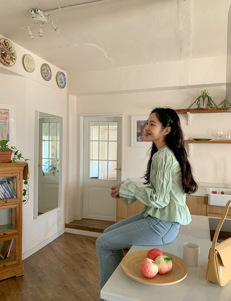 夏服ホワイトカラーラウンドネックスリーブシャツ スリム ロング 夏物 Oネック 長袖 muzly63416455292