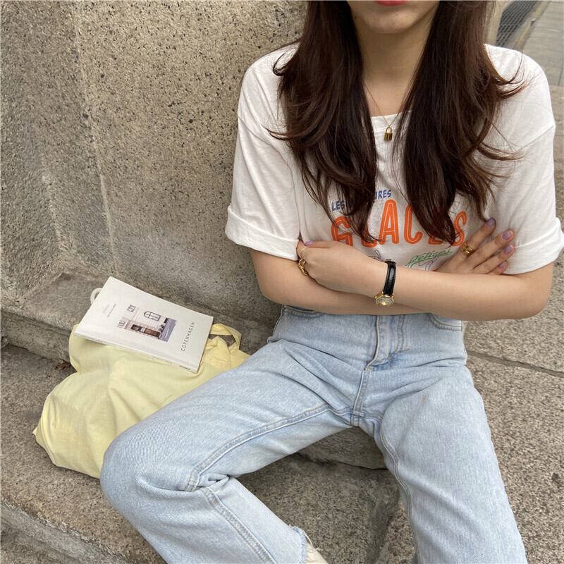 韓国ファッションNEW夏服ラウンドネックプリント柄ルーズTシャツトップス 大人ガーリー スウィート キュート カジュアル 夏物 Oネック muzly71465585458