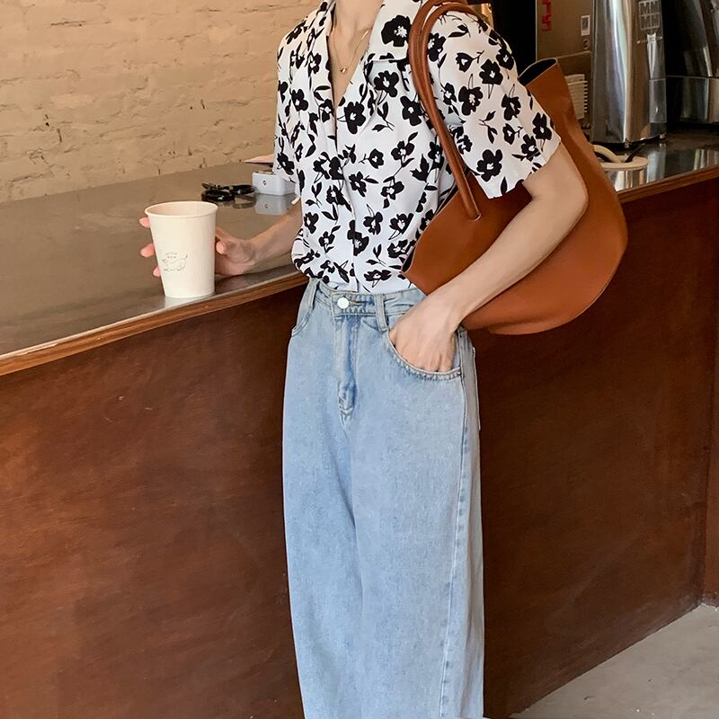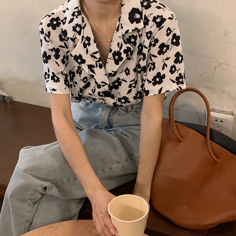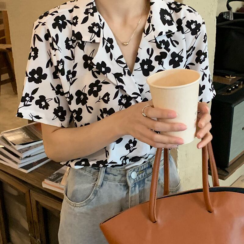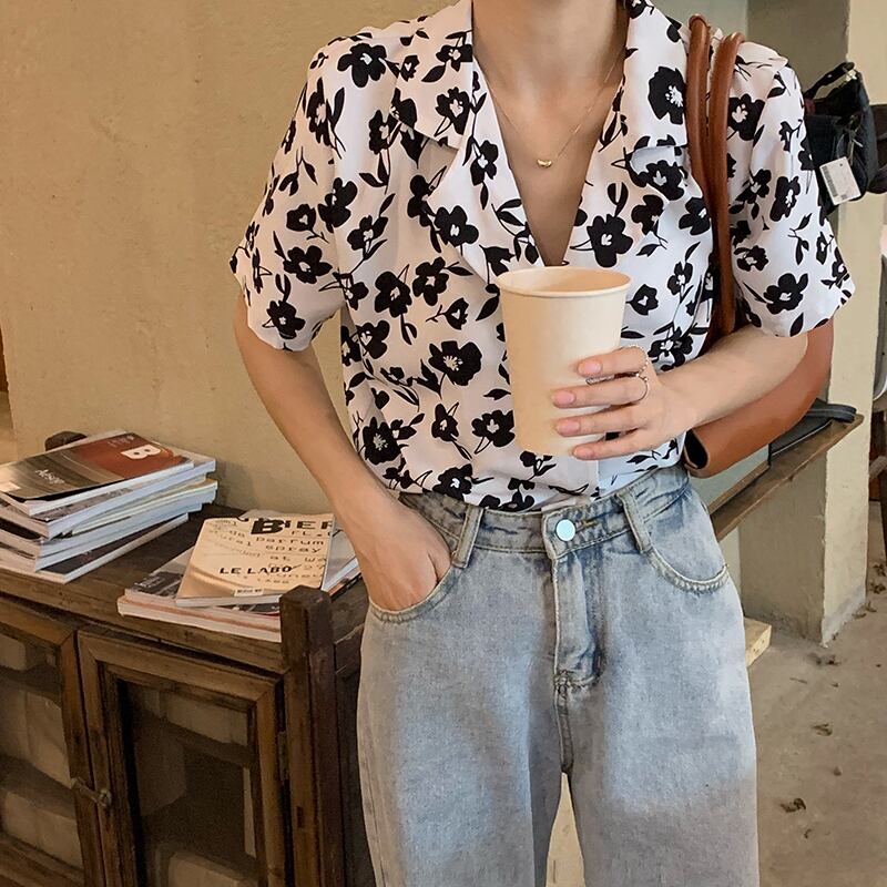 韓国ファッション夏服トップス ルーズカジュアルフローラルシャツ レディース 夏物 花柄 muzly86397830419