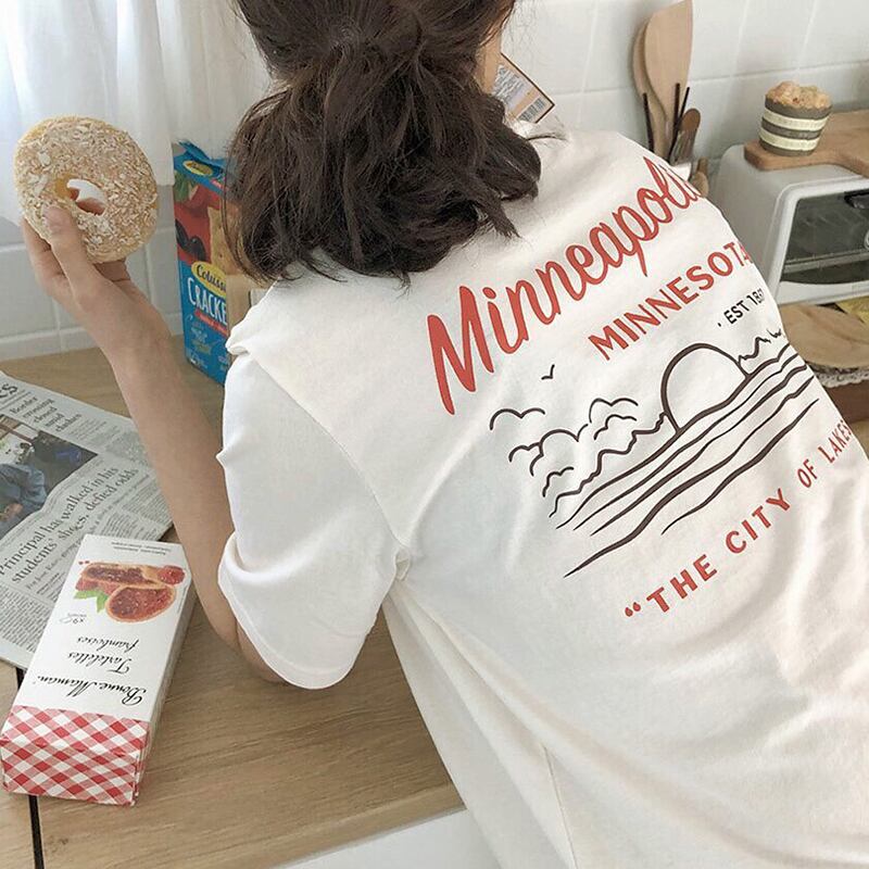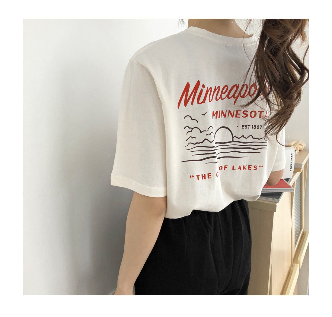 韓国ファッション夏服ベーシックラウンドネックシャツ プリントスタイルルーズTシャツレディース 夏物 Oネック muzly68764629751