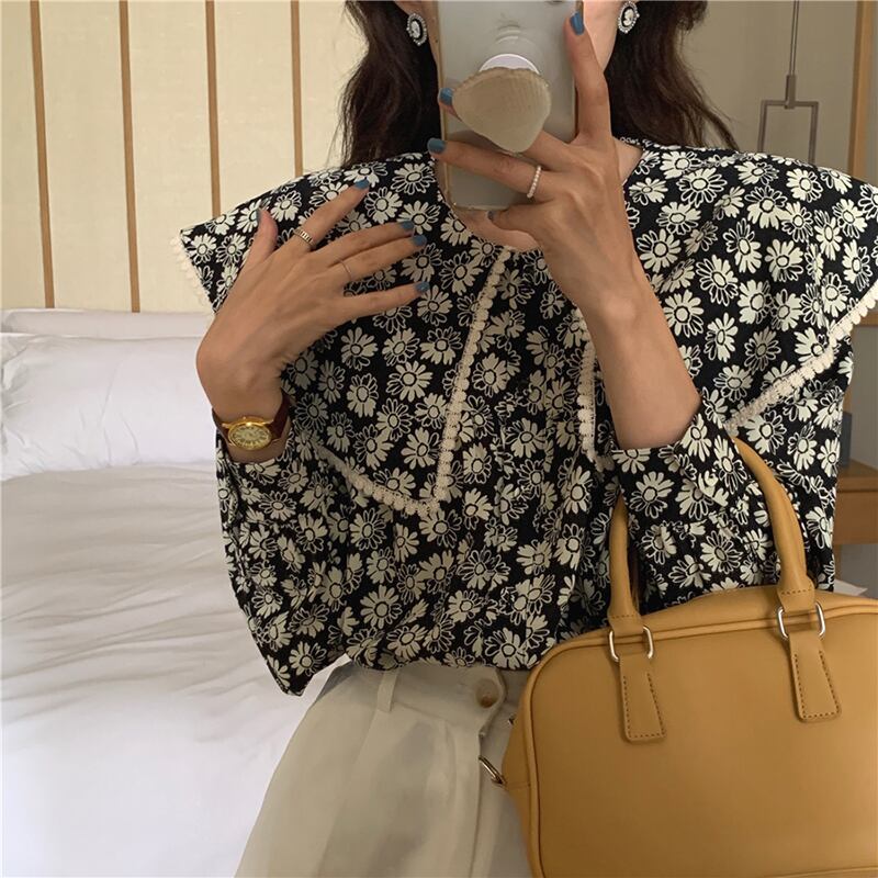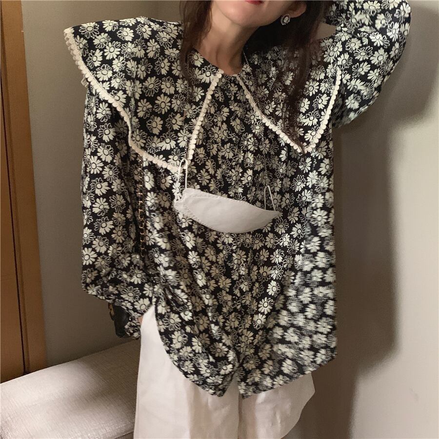 夏服レースプリント柄ルーズシャツ トップス ロング 夏物 長袖 muzly70300349865