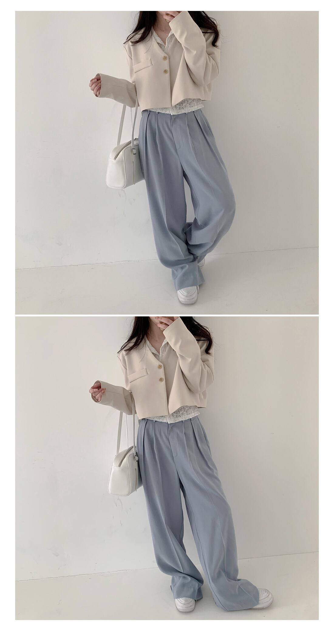 スプリングスタンダードハイウェストパンツ 薄手レディース レトロ 春物 ウエスト muzly82516785297