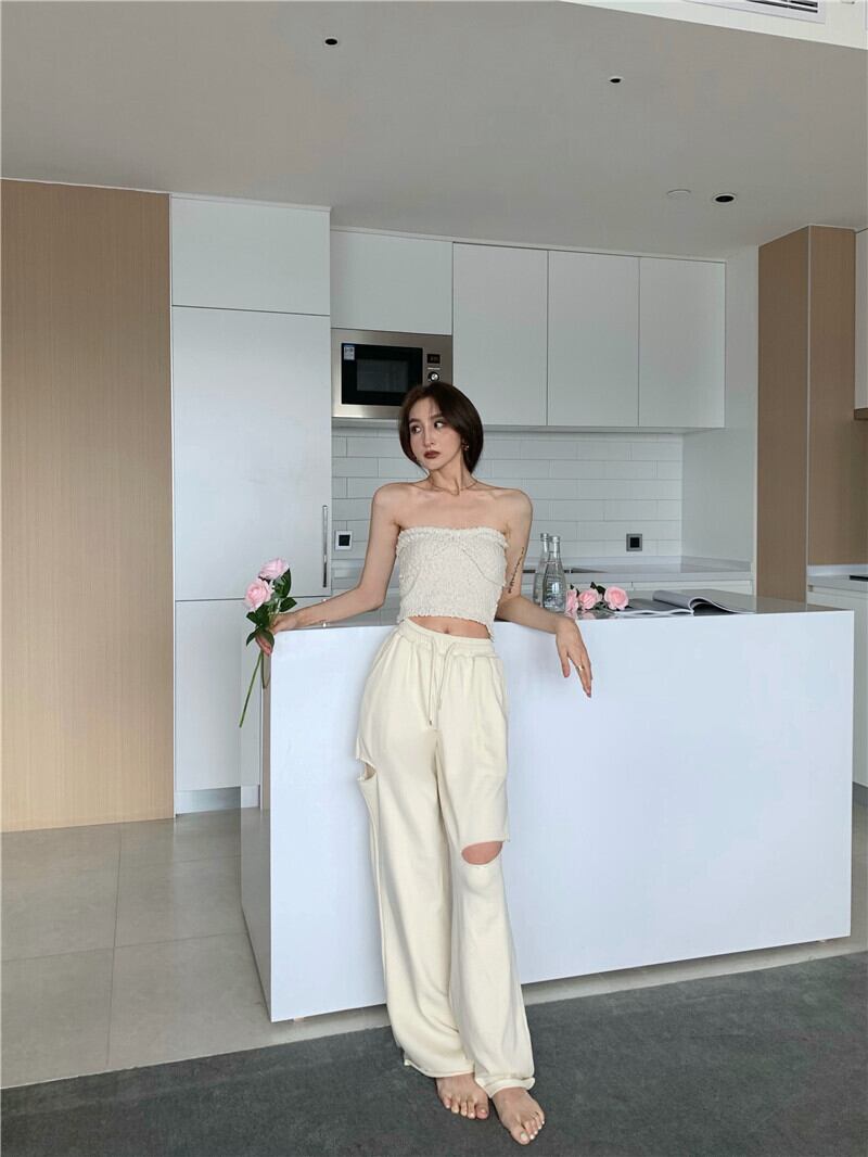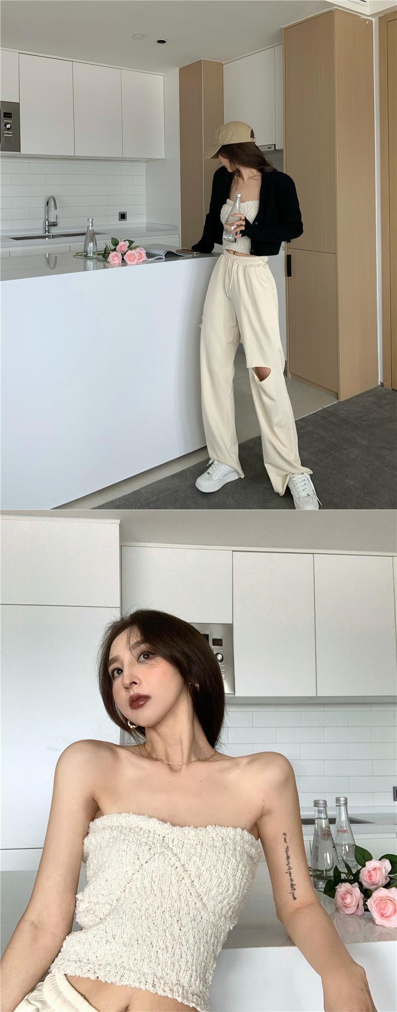 韓国ファッションNEW夏服ニットトップス カーディガンパンツ ロング レース 夏物 レースアップ 長袖 muzly81569257077