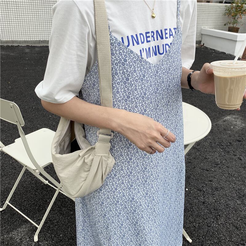韓国ファッションNEW夏服Vネックフローラルルーズウェストノースリーブワンピースレディース 夏物 花柄 ウエスト ミドル丈 muzly47112394795