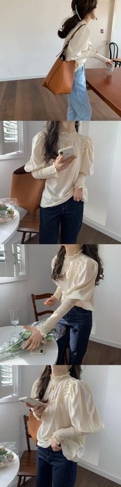 スプリングラウンドネックスタンダードレースシャツ ロング レトロ 春物 Oネック 長袖 muzly85100878595