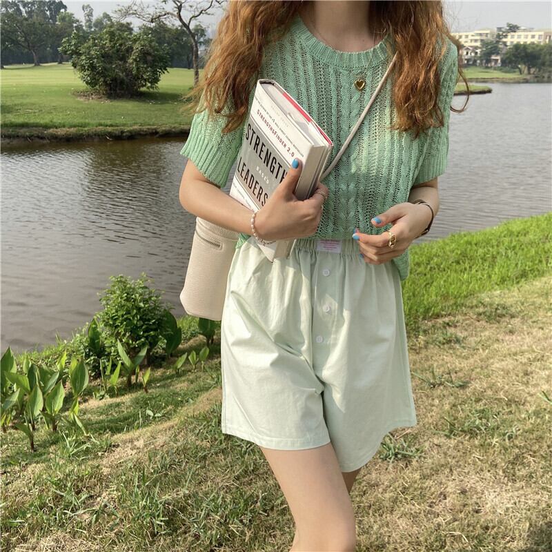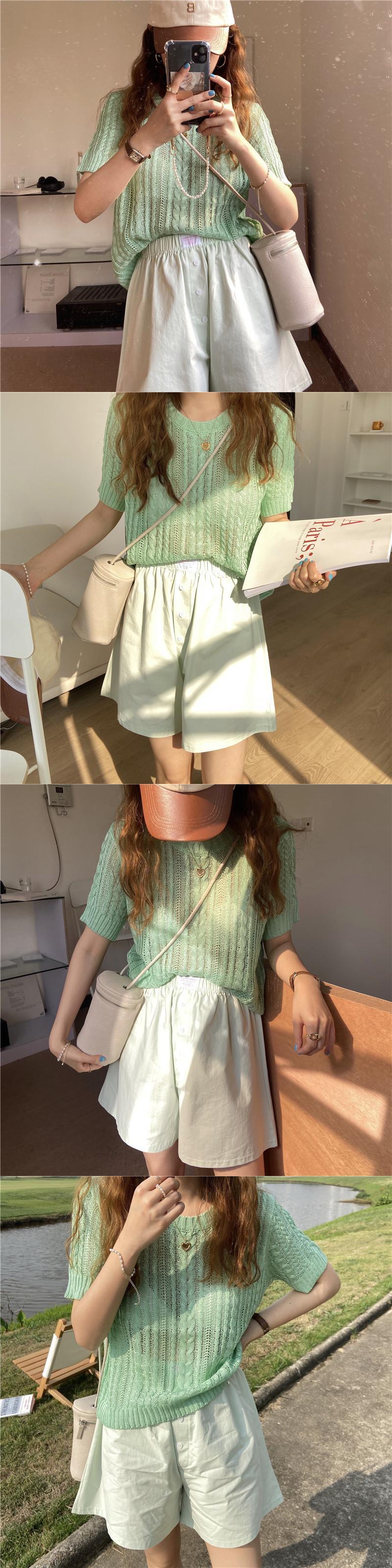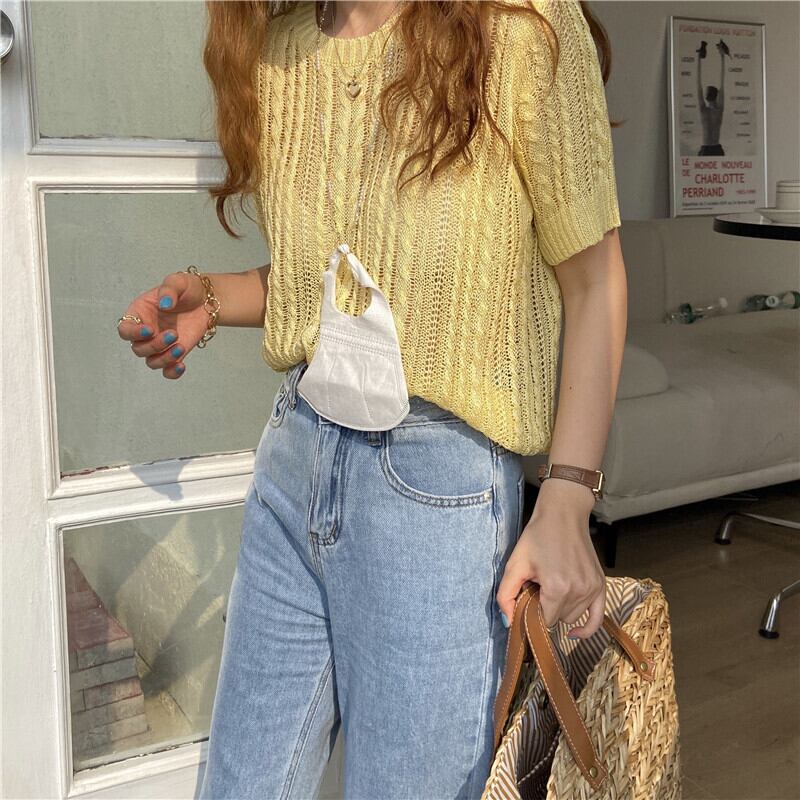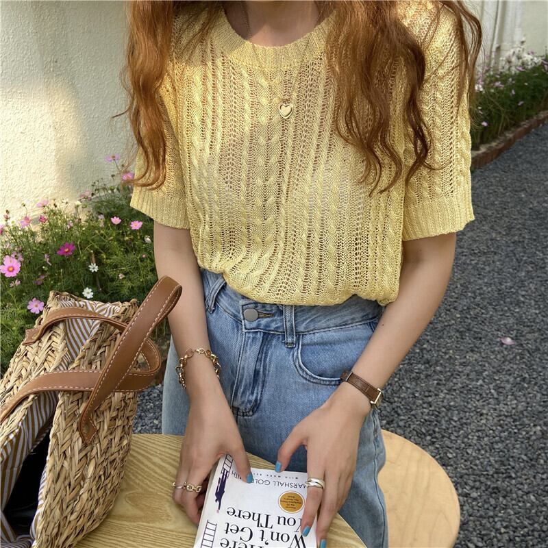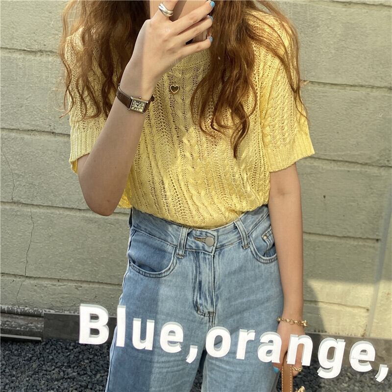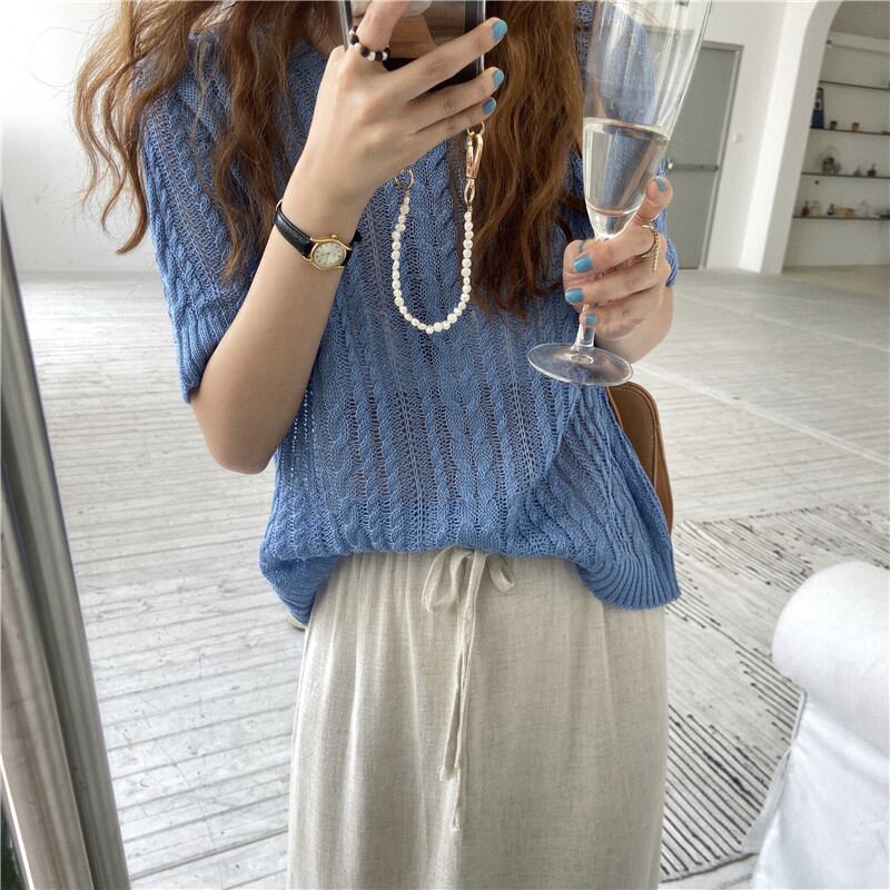 韓国ファッションNEW夏服ラウンドネックパターンセーター ルーズ薄手Tシャツトップス レディース 夏物 Oネック muzly68753933426