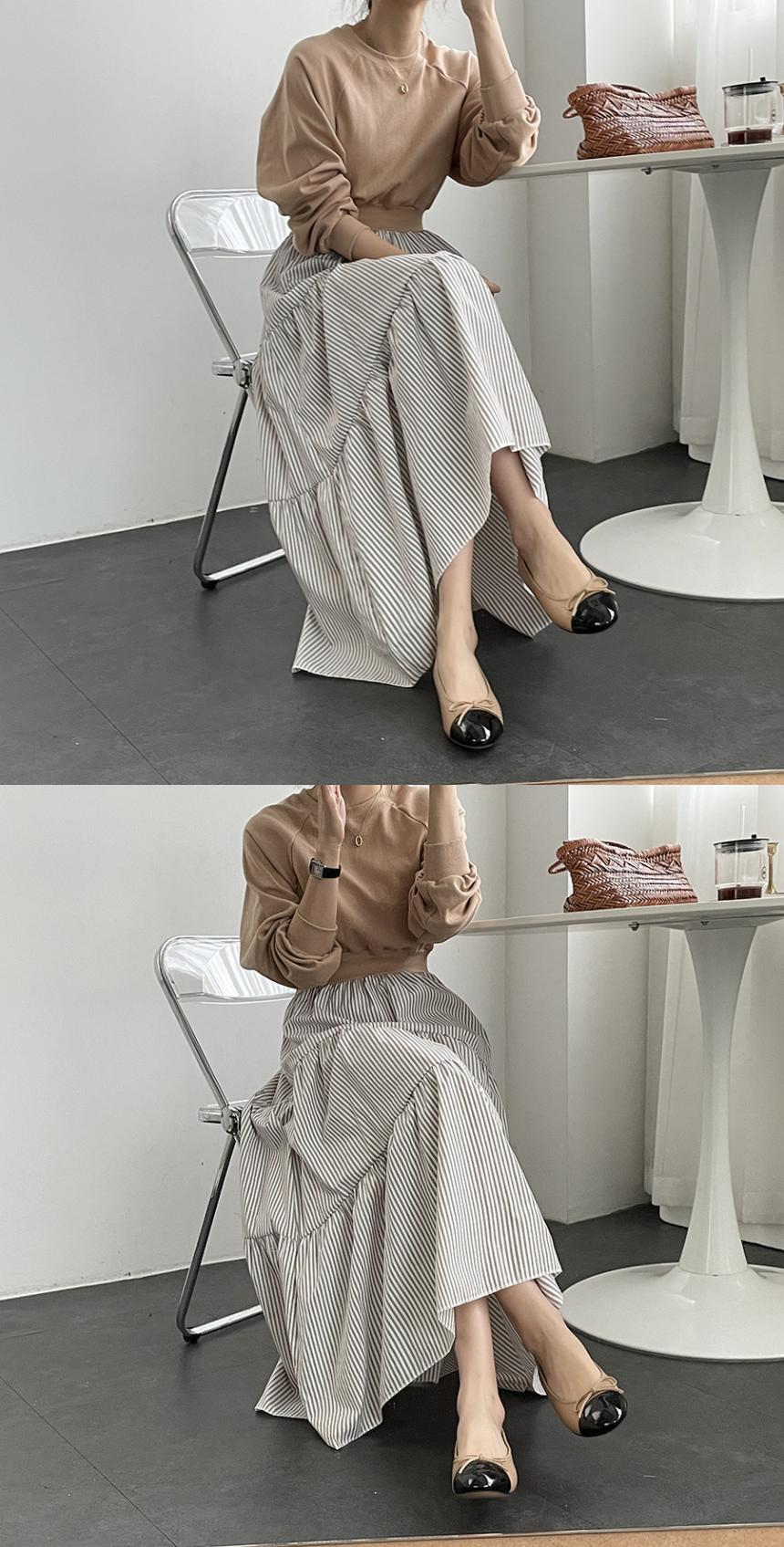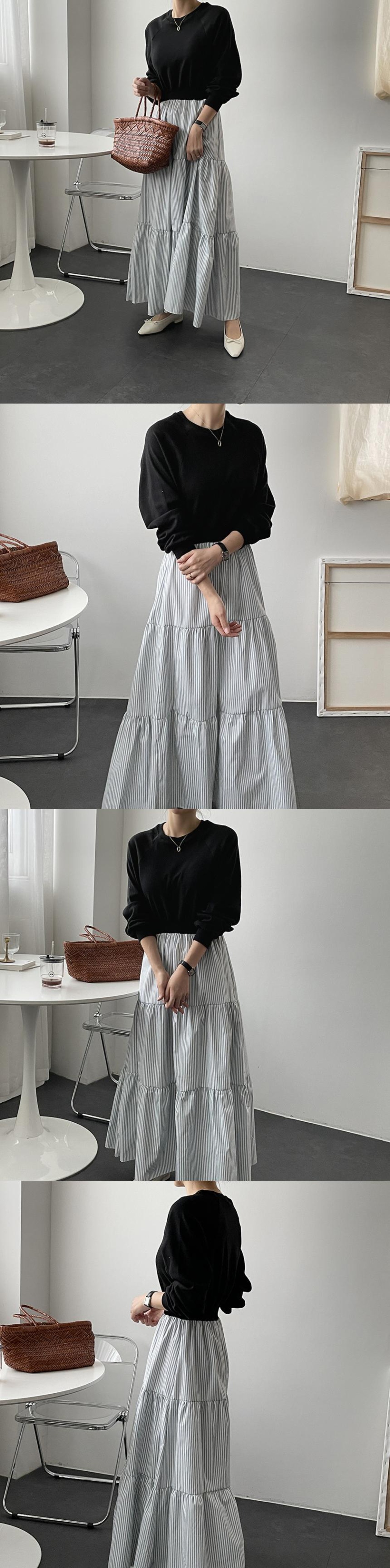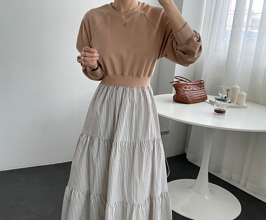 韓国ファッション秋物スタンダードラウンドネックプルオーバー セーター ウェスト薄手ストライプワンピースレディース ロング レトロ オータム Oネック ステッチ 長袖 ウエスト muzly44909612724 | Neatly