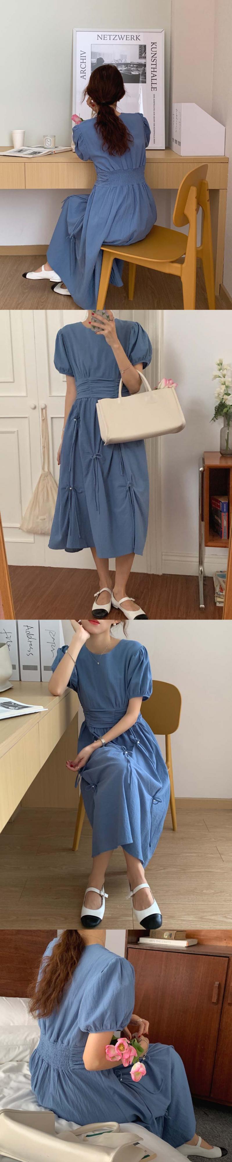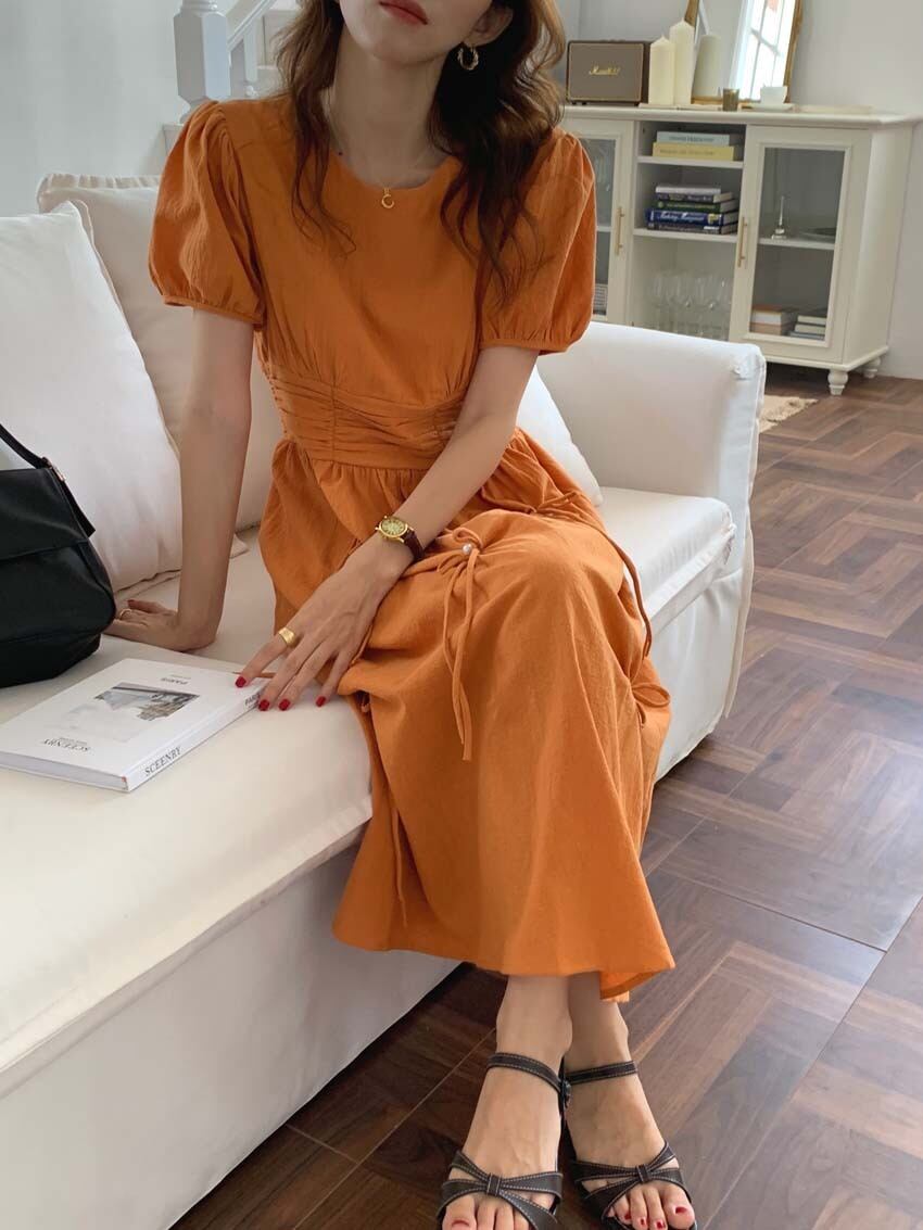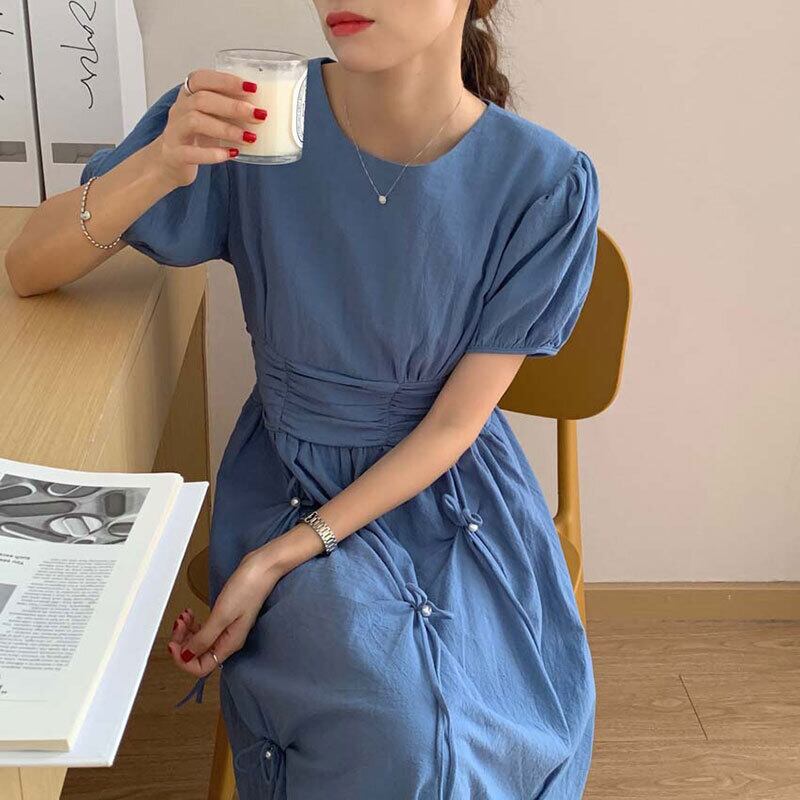 夏服スタンダードラウンドネックパフスリーブスリーブロングスカート ウェスト半袖ワンピースレディース ショート レトロ ハーフスリーブ 夏物 Oネック ウエスト muzly46201594344 | Neatly