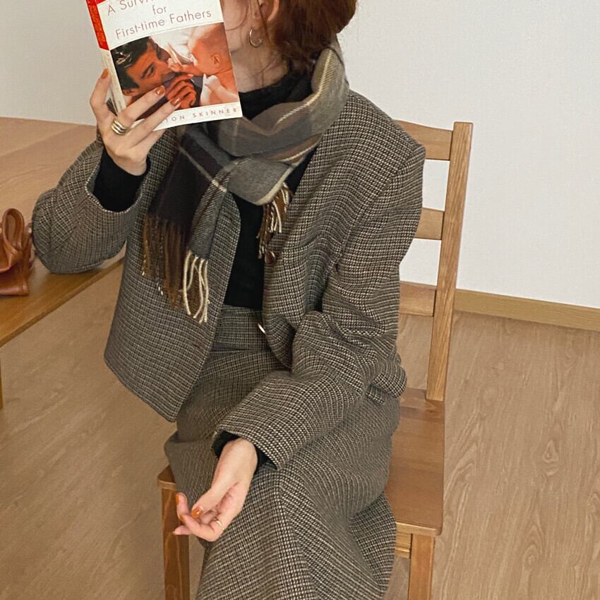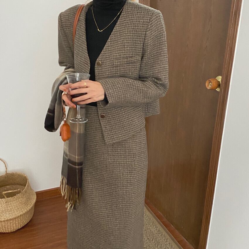 韓国ファッションスタンダードVネックボタンショートジャケット 薄手ハイウェストウェストスカート レディース レトロ ウエスト muzly35328279553