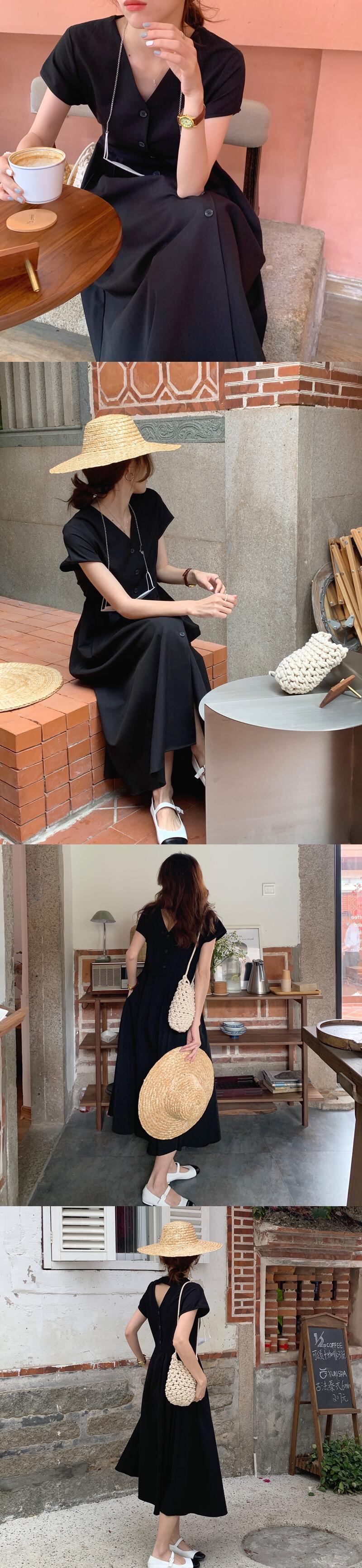韓国ファッションNEW夏服スタンダードバックロングスカート ウェストVネックミニ ワンピースワンピースレディース レトロ 夏物 スタイル ウエスト muzly17699807755