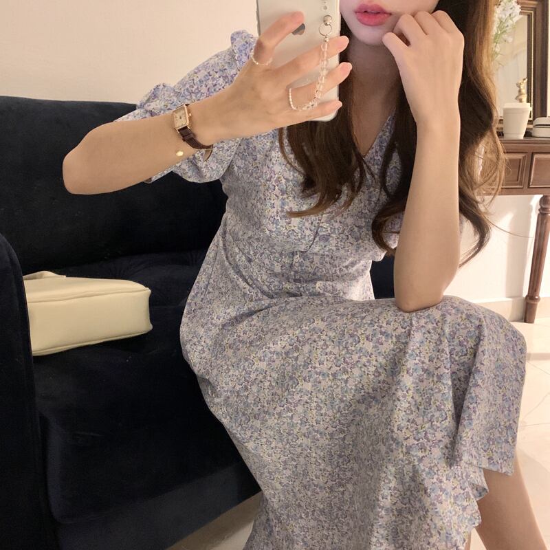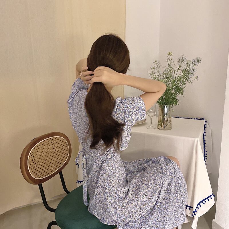 韓国ファッション夏服スタンダードフローラルスカート ミニ ワンピースワンピース レトロ 大人ガーリー スウィート キュート カジュアル 夏物 花柄 スタイル muzly19688063879 | Neatly