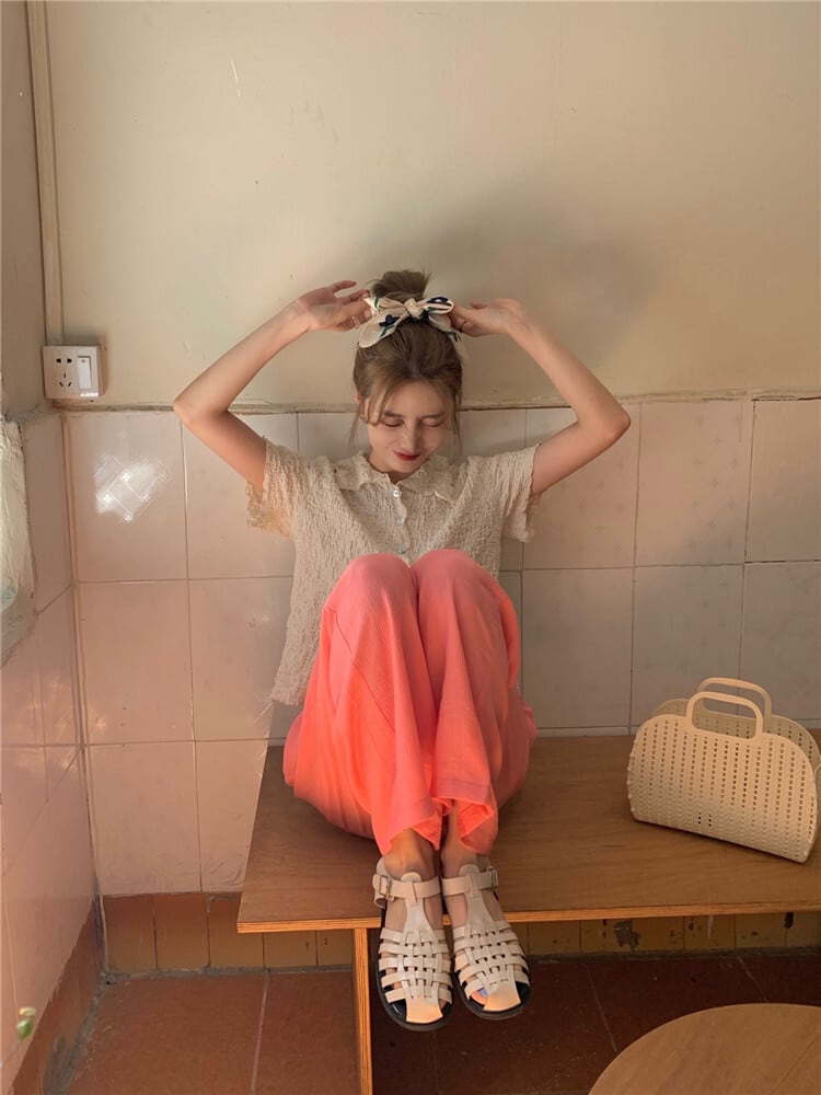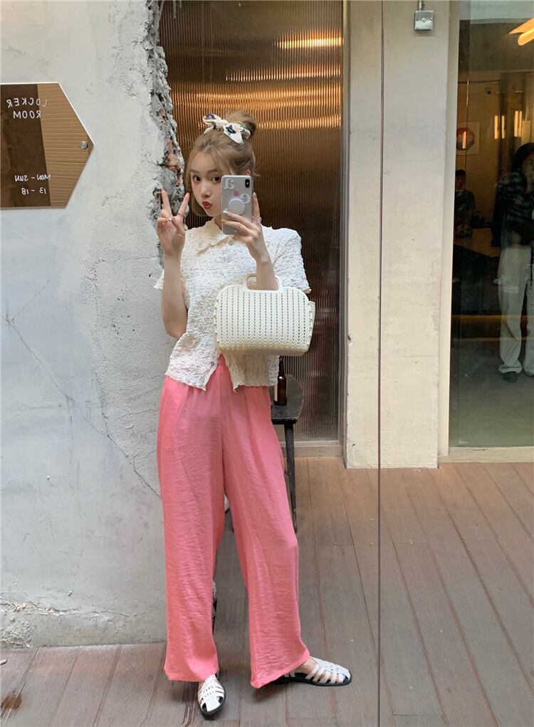 韓国ファッションNEW夏服シャツ トップス ストレッチウェストハイウェスト薄手ワイドレッグパンツ レディース エラスティック 伸縮 夏物 ワイドパンツ ウエスト muzly33458985193 | Neatly